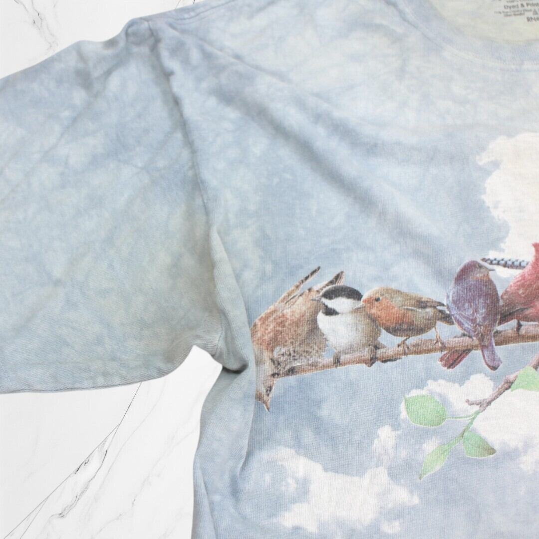 アメリカのアート系Tシャツブランド「THE MOUNTAIN」による、90年代らしい雰囲気が漂うヴィンテージTシャツ。鮮やかなスカイブルー地に動物のグラフィックが映え、インパクトある一着です。