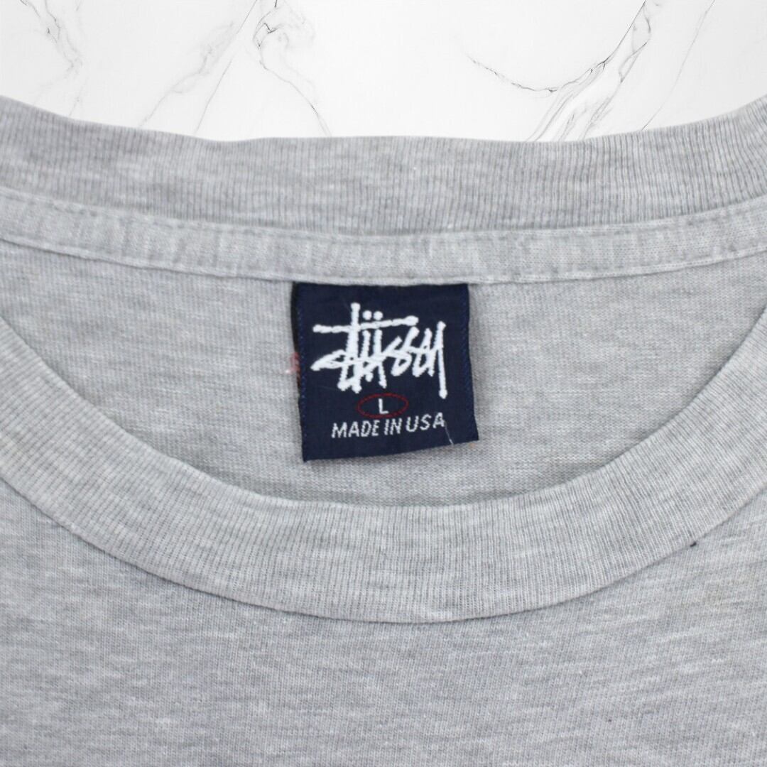 古着 90s USA製 OLD STUSSY T SHIRTS Grey ステューシー Tシャツ 半袖 シングルステッチ 紺タグ 【Vintage】