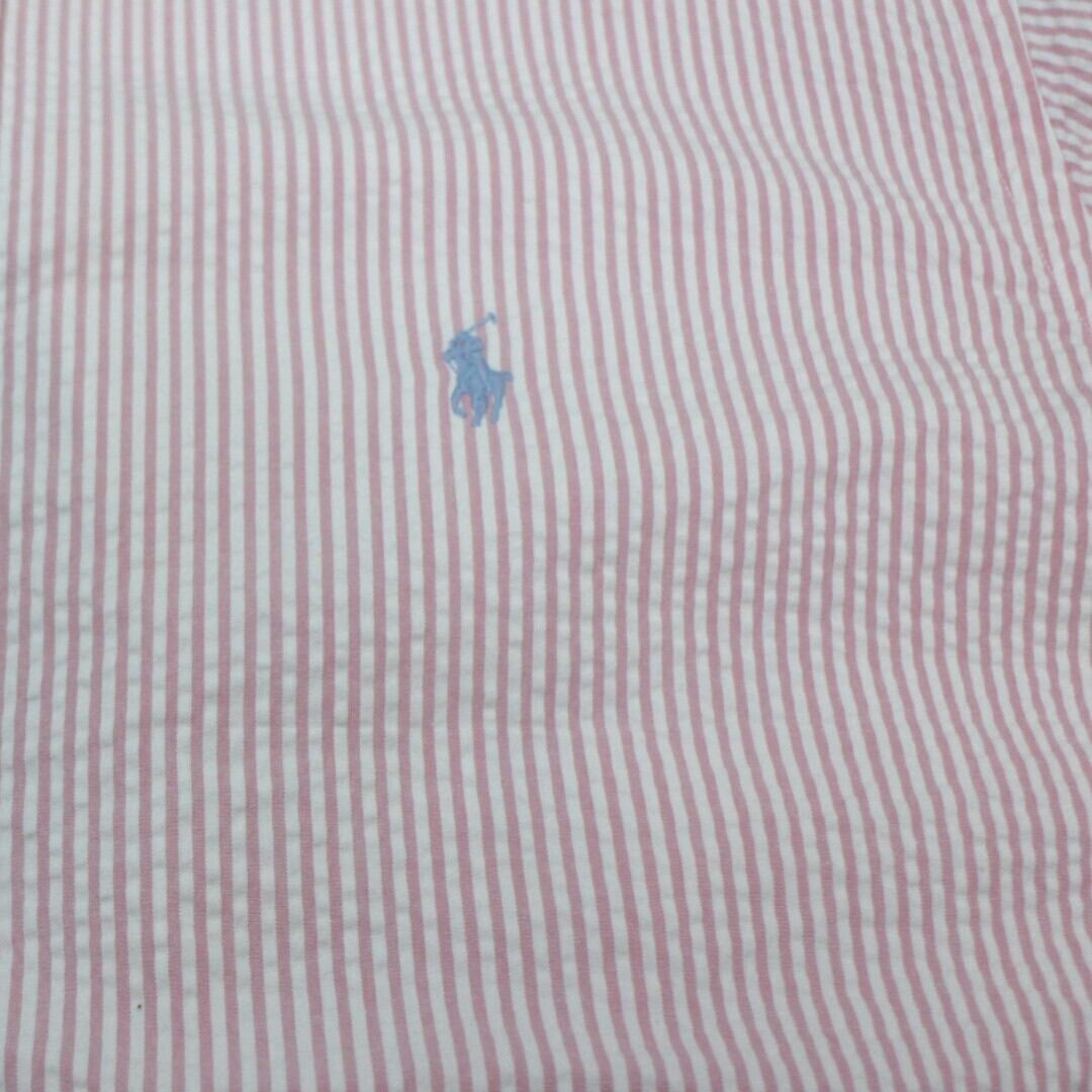 爽やかなピンク系のチェック柄に、胸元のポニーロゴが映えるデザイン。