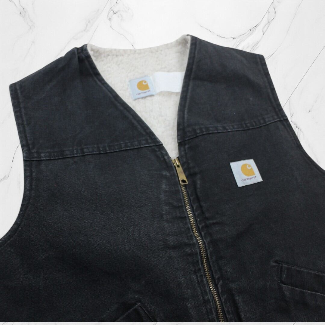 古着 90s USA製 Carhartt Duck Vest V03 BLK カーハート ダックベスト 裏地ボア【Vintage】
