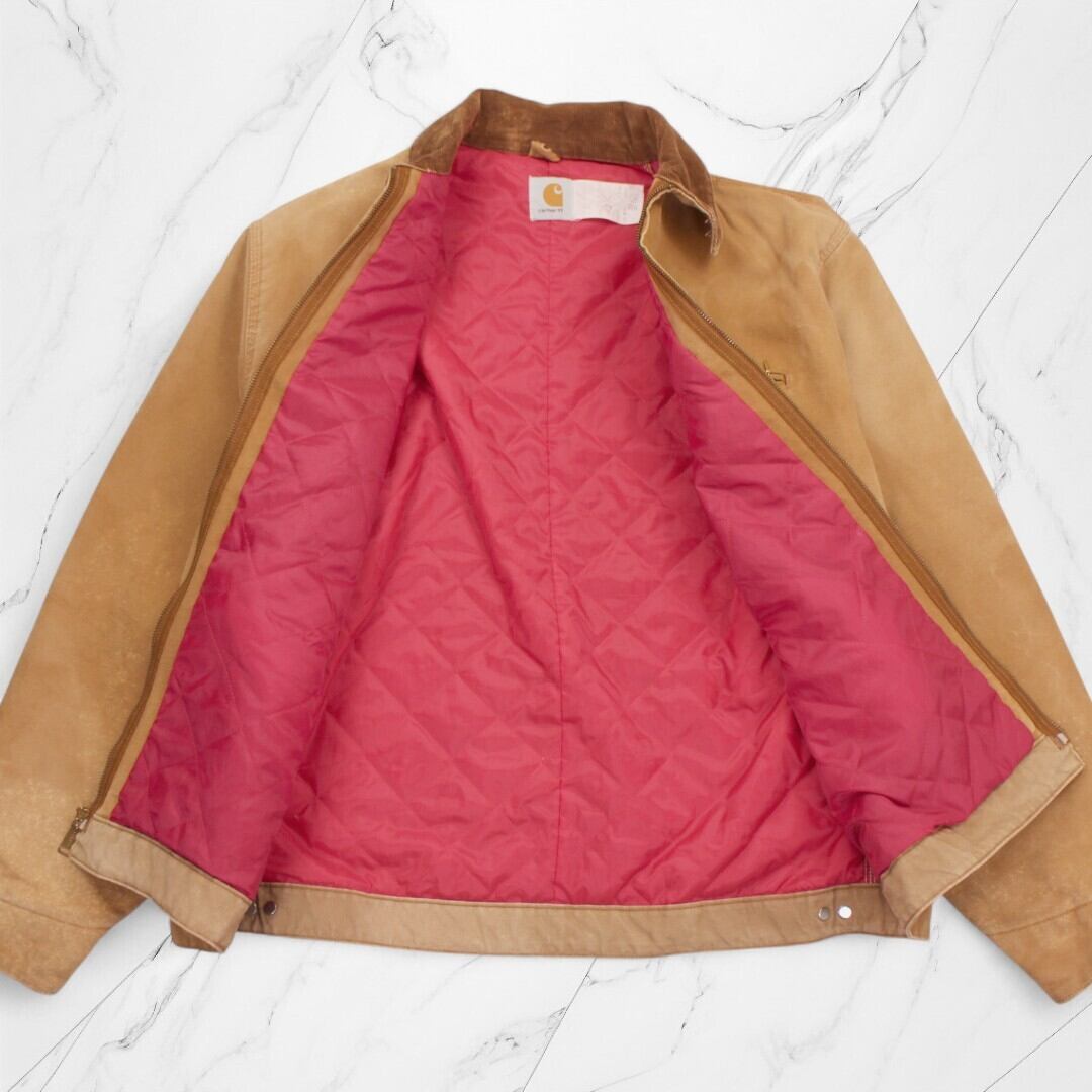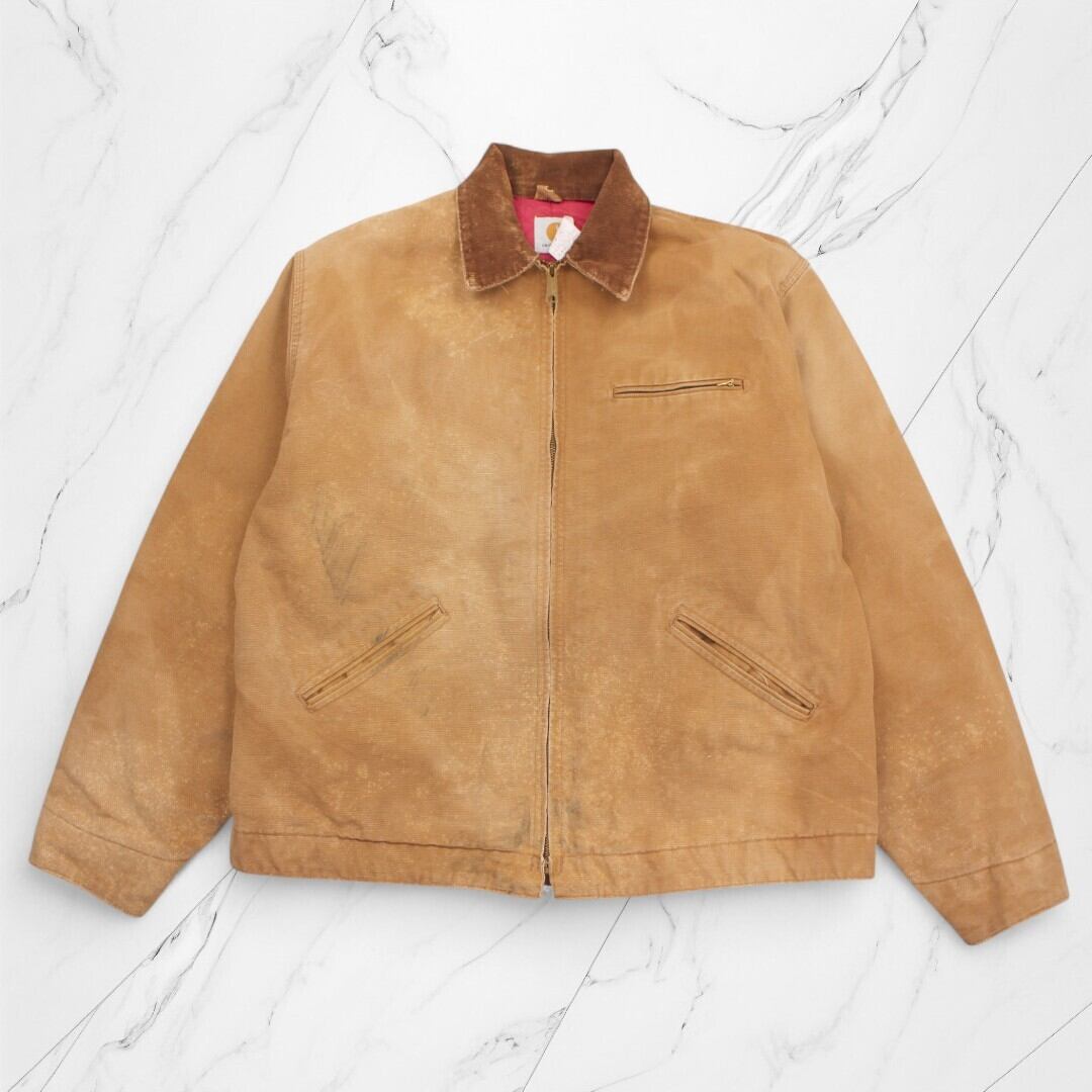 カーハートの定番ワークジャケットであるデトロイトジャケットは、耐久性の高いコットンダック生地を使用し、裏地はキルティング仕様で保温性も備えた人気モデル。