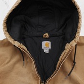 定番のアクティブジャケットで、耐久性のあるダック生地と裏地キルティング仕様。フード付きでワークシーンからストリートスタイルまで幅広く活躍するアイテムです。