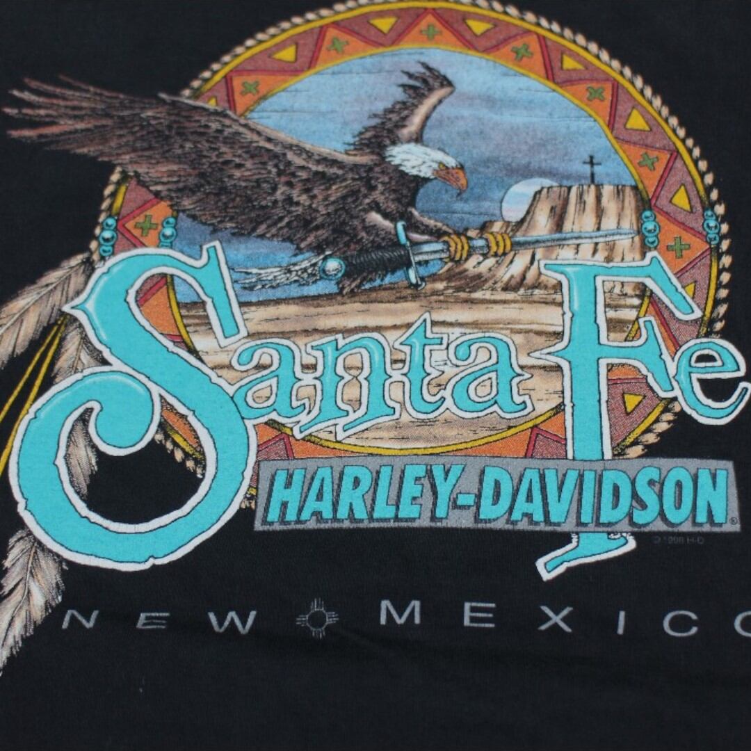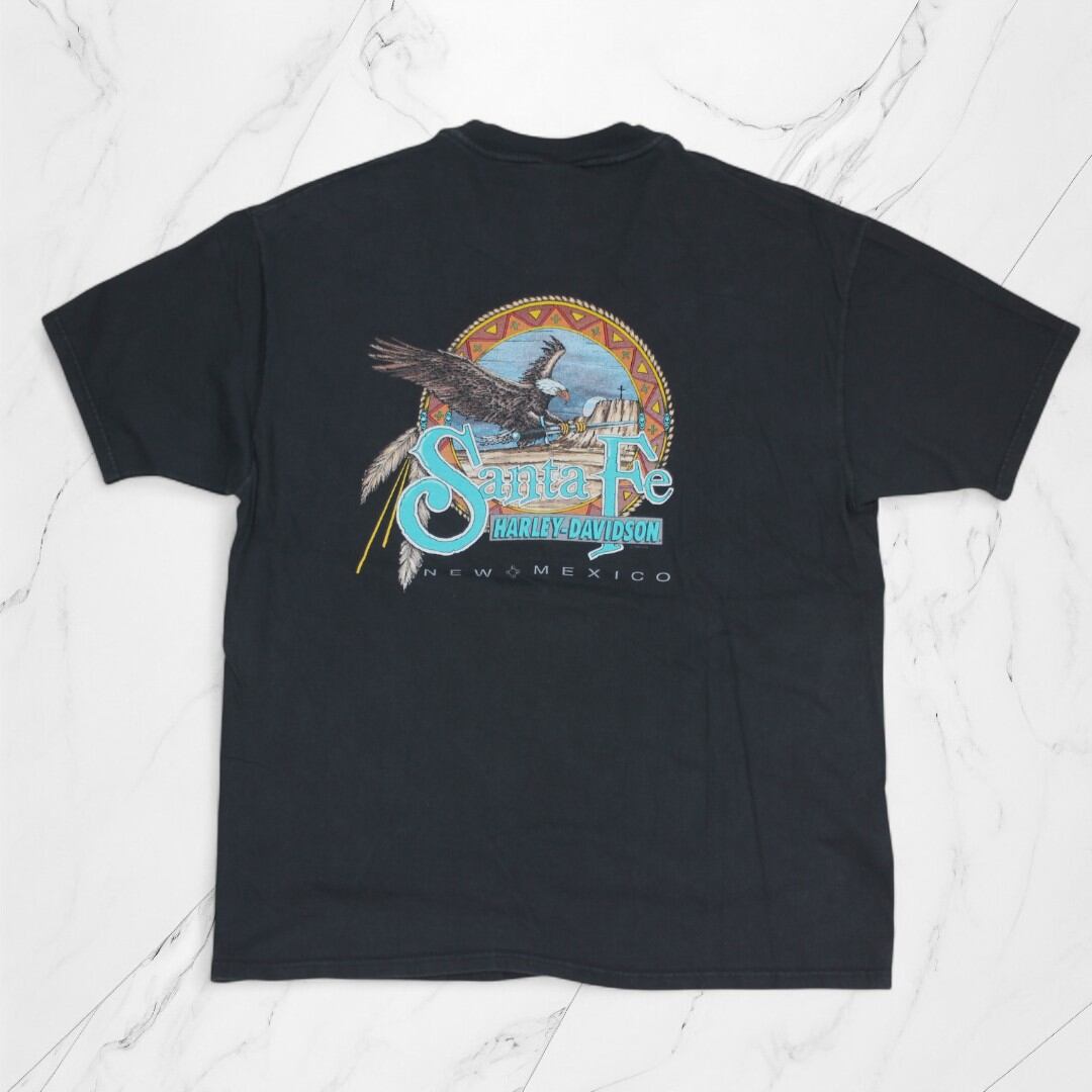 フロントには大きなブランドロゴ、バックには「Santa Fe Harley-Davidson / New Mexico」のグラフィックがプリントされた両面仕様。