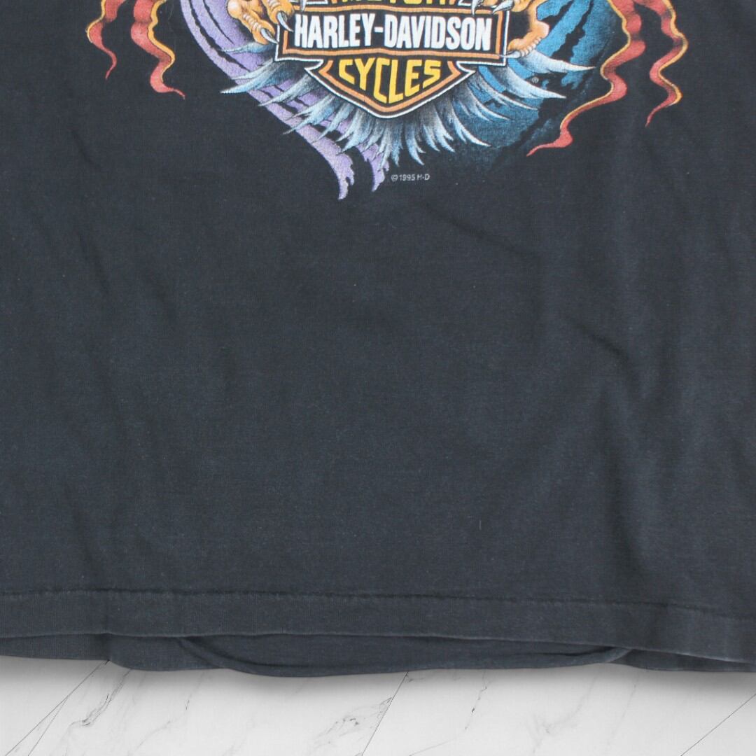 古着 90s USA製 Harley Davidson T-Shirts Washed Black ハーレーダビッドソン Tシャツ シングルステッチ 半袖 【Vintage】mhd235