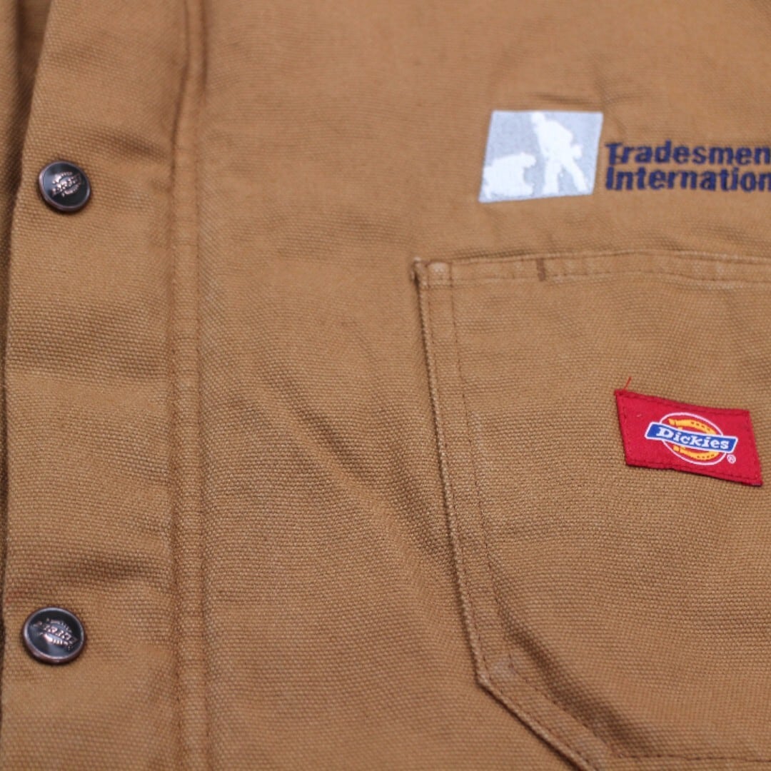 左胸には企業ロゴの刺繍が入り、フロントにはDickiesタグ付き。