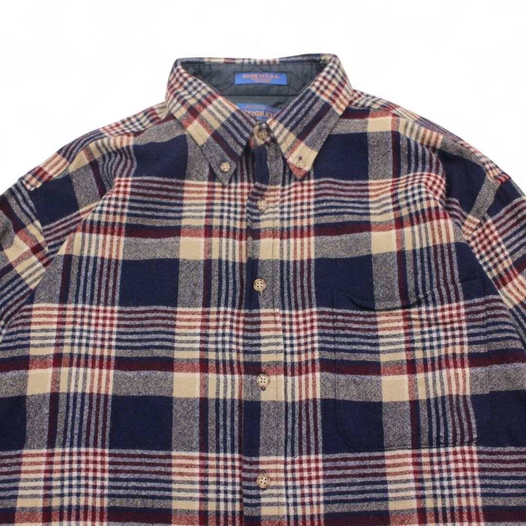 古着 90s USA製 PENDLETON Navy/Wine Red/Beige ペンドルトン ウールシャツ 【Vintage】