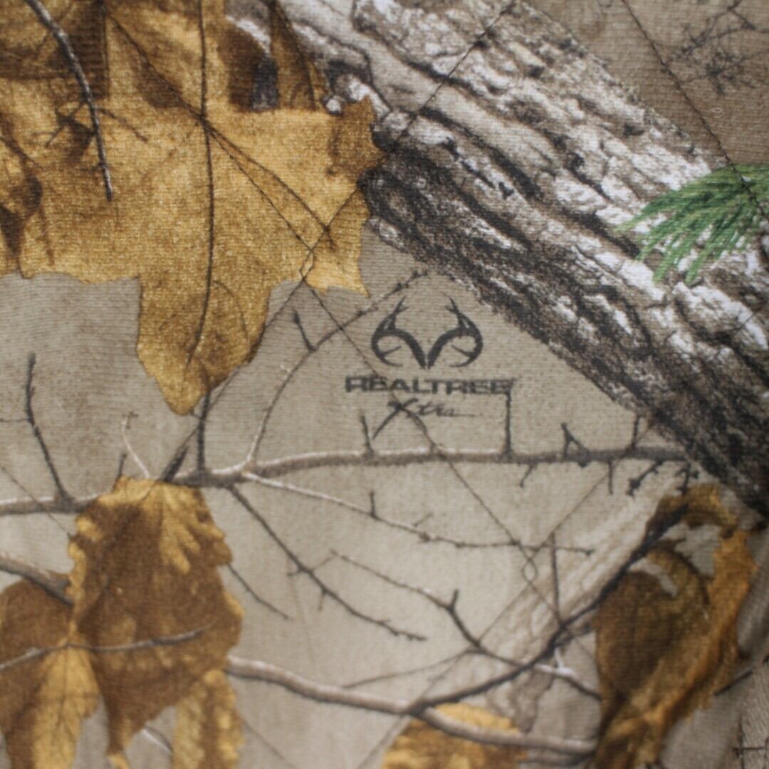 裏地にはリアルツリーカモのキルティングが施され、ワークスタイルの無骨さとアウトドアテイストが融合した存在感ある一着です。