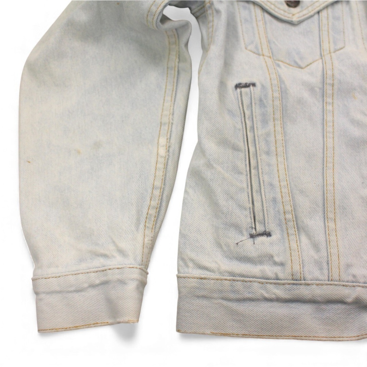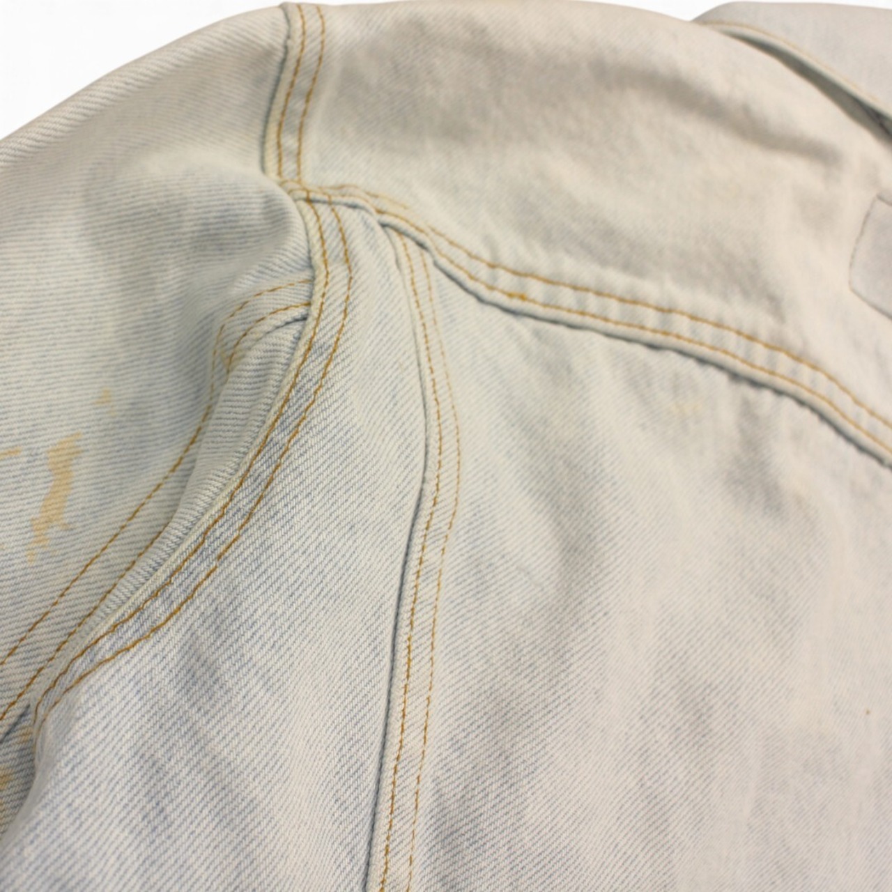 淡いライトブルーに色落ちした一本で、全体のフェード感が雰囲気のある一着です。コンパクトなシルエットで、Tシャツはもちろん、スウェットやニットの上からもすっきり羽織れるバランス。ライトカラーのデニムなので、春夏のスタイリングにも取り入れやすいアイテムです。