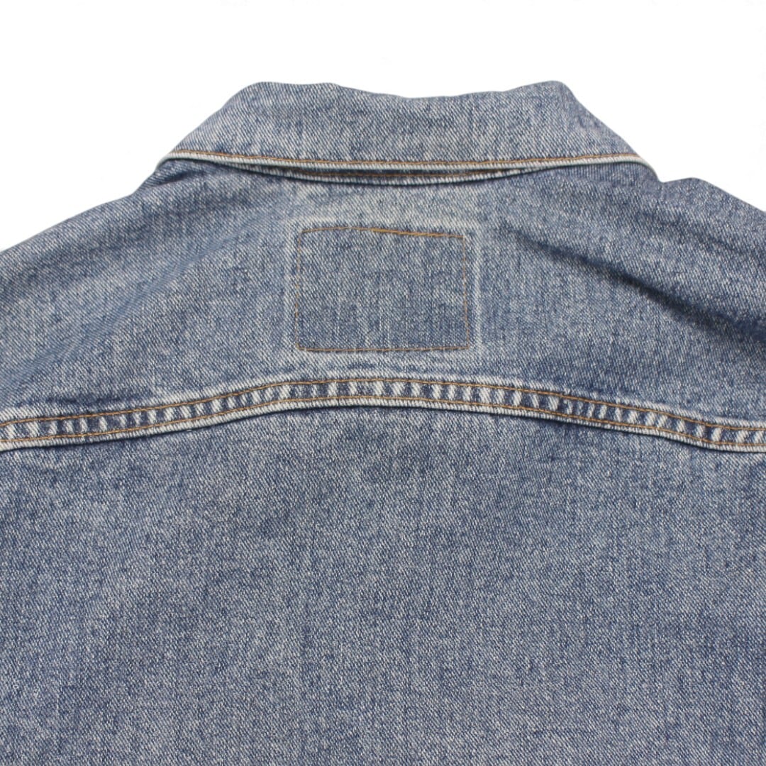 しっかりとした100%コットンデニムを使用した、ヴィンテージならではの風合いが魅力の一着です。全体にフェード感とアタリが入り、程よくルーズなXLサイズのシルエットで、スウェットやパーカーの上からもざっくり羽織れるサイズ感。デニムオンデニムはもちろん、チノパンやスラックスとも相性の良い定番Gジャンです。