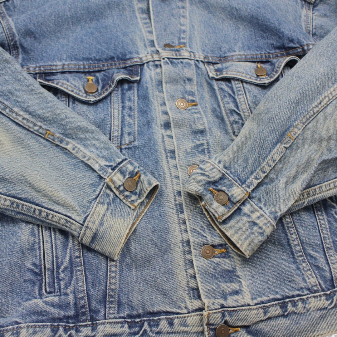 背面に大きくあしらわれた“CAMEL”ロゴが目を引く一着で、程よいフェード感のあるデニムが雰囲気抜群です。身幅にゆとりのあるシルエットで、スウェットやパーカーの上からもラフに羽織りやすいサイズ感。ストリートやアメカジスタイルの主役アウターとして活躍してくれます。