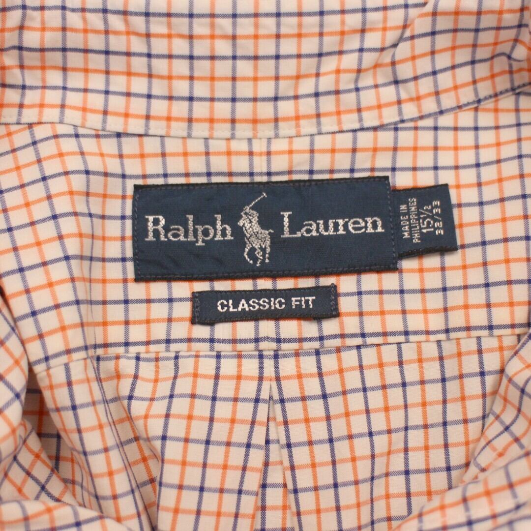 古着 Polo Ralph Lauren CLASSIC FIT Shirts Orange/Blue Check ポロ ラルフローレン ボタンダウン 長袖シャツ 【Vintage】