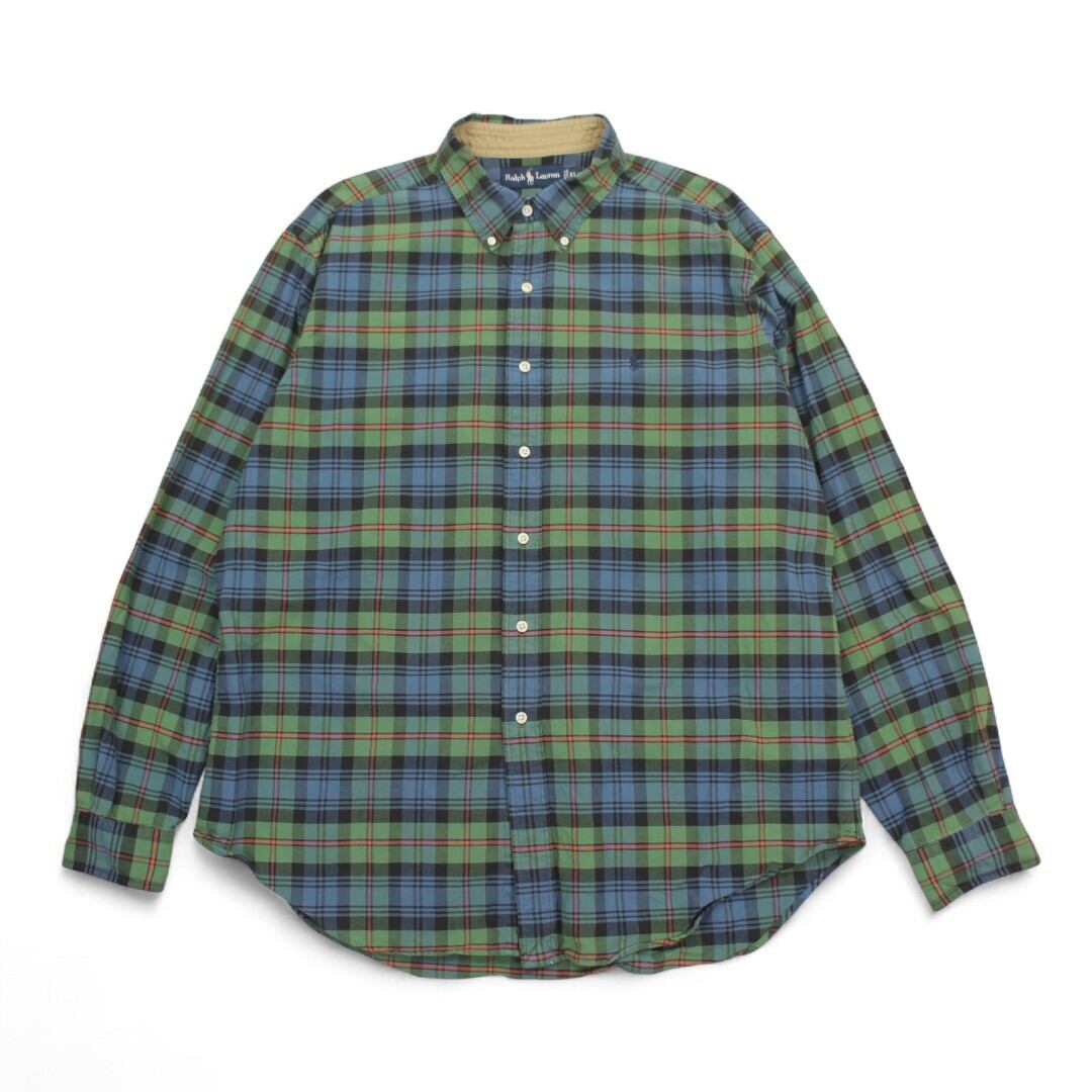 古着 Polo Ralph Lauren Shirts Green/Blue Check ポロ ラルフローレン ボタンダウン 長袖シャツ 【Vintage】