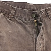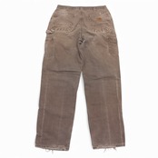古着 Carhartt(カーハート)B136 ダブルニーワークパンツ。タフな100%コットンダック生地を使用した、MEXICO製の定番モデル。DKB(ダークブラウン)カラーに強いフェード感が入り、さらに汚れや破れなどリアルワークな使用感が加わった、雰囲気系として人気の一本です。使い込まれた風合いを楽しみたい方におすすめ。