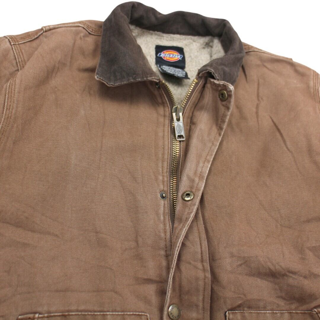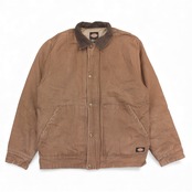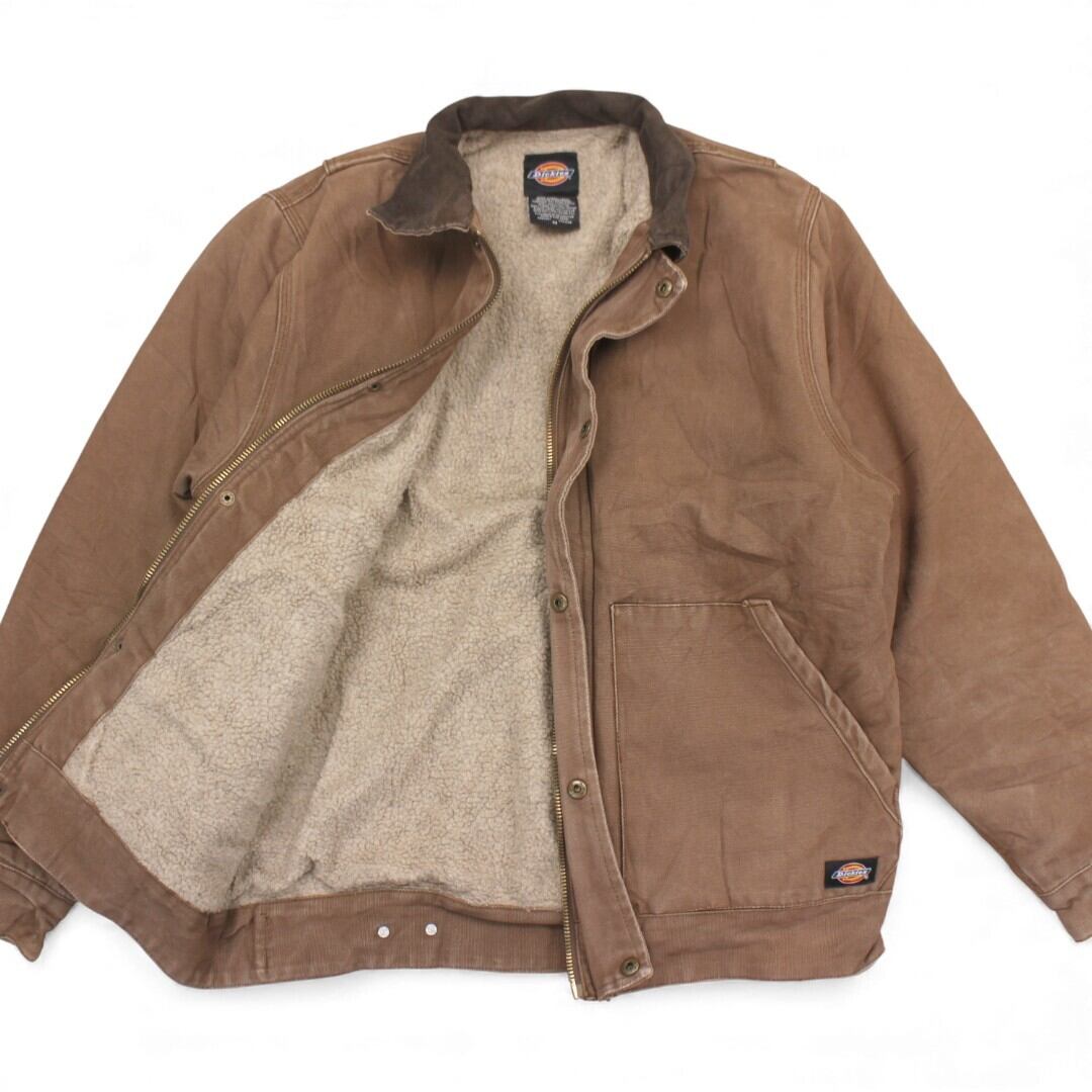 古着 Dickies のトラディショナルジャケット。タフな100%コットンダック生地を使用し、裏地にはボアが施された防寒性の高いワークアウターです。ブラウンカラーでスタイリングに取り入れやすく、デイリーからワークシーンまで幅広く活躍します。