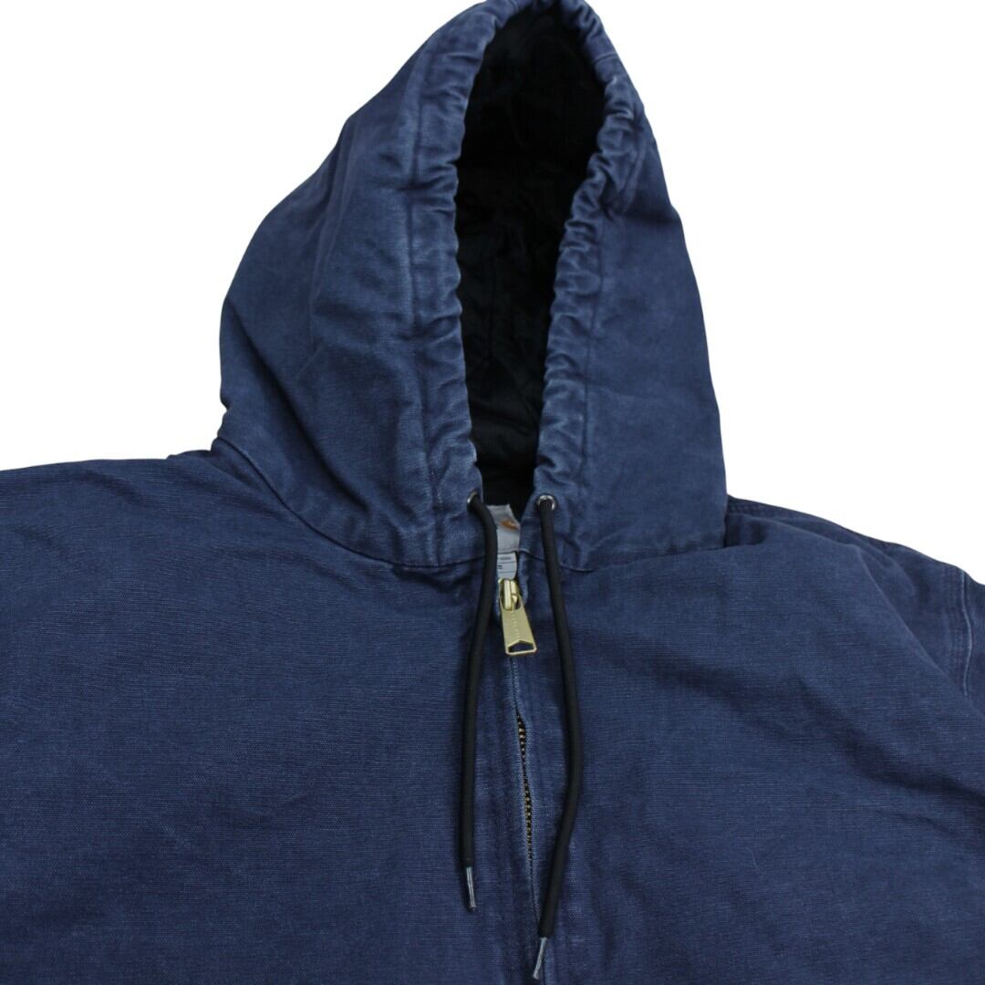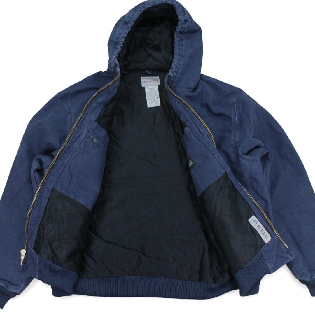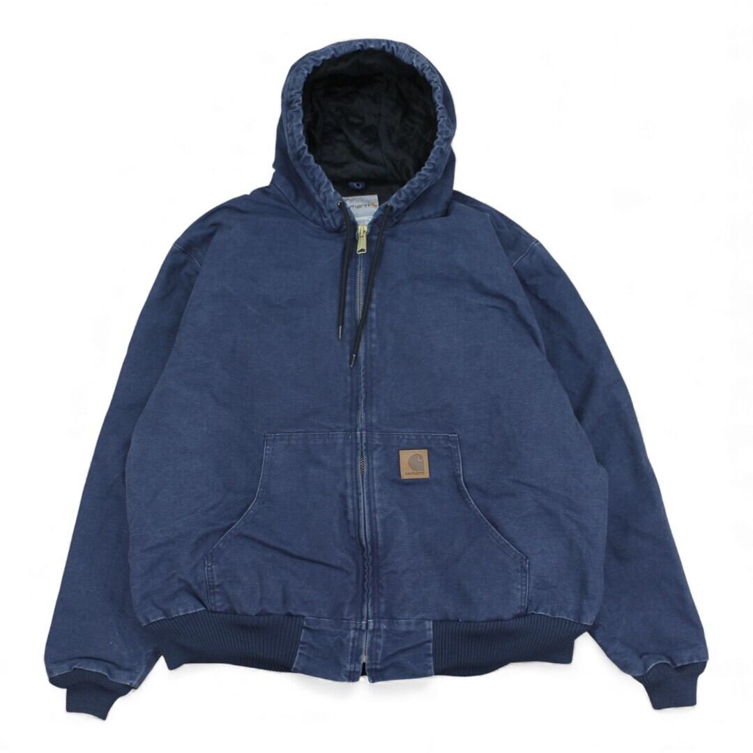 古着 Carhartt のアクティブジャケット。タフな100%コットンダック生地を使用し、裏地キルティングで防寒性にも優れた定番ワークアウターです。ネイビーカラーは使いやすく、雰囲気のあるフェード感も魅力。MEXICO製のしっかりとした作りで、オーバーサイズで着用したい方にもおすすめの2XLサイズです。