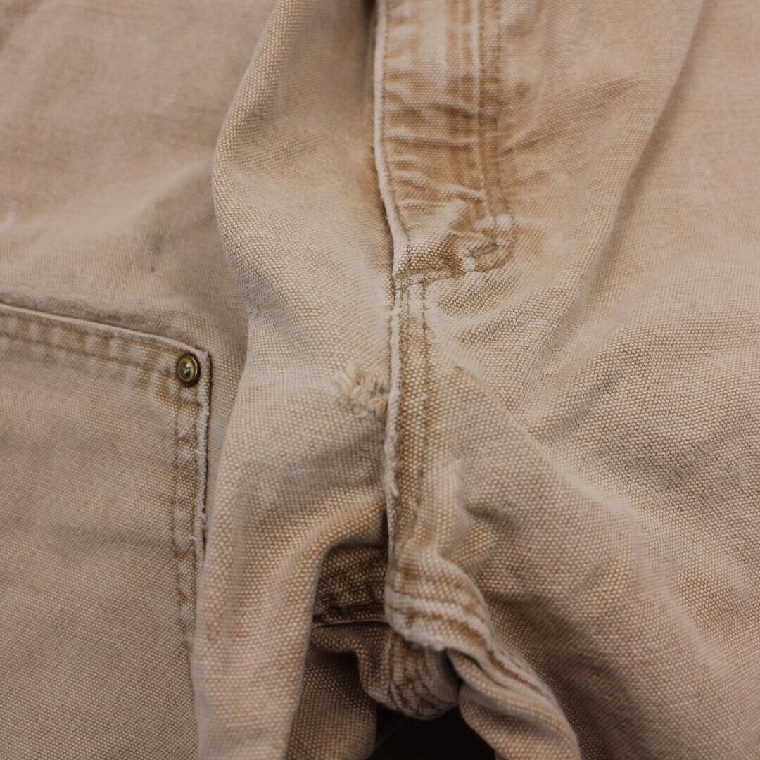 リアルな使用による強いフェード感やスレ、汚れなどがヴィンテージらしい雰囲気を際立たせています。ダブルニー仕様で補強が効いており、ワークスタイルはもちろん、ストリートやアウトドアにも取り入れやすい定番アイテムです。