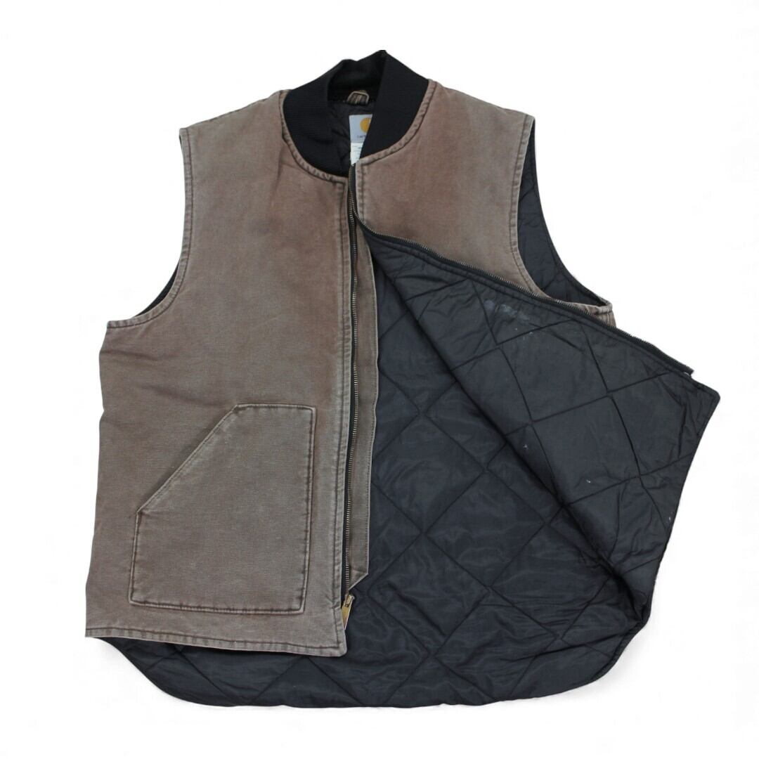 古着 00s USA製 Carhartt Duck Vest V02 CHT カーハート ダックベスト 裏地ナイロンキルティング tch497