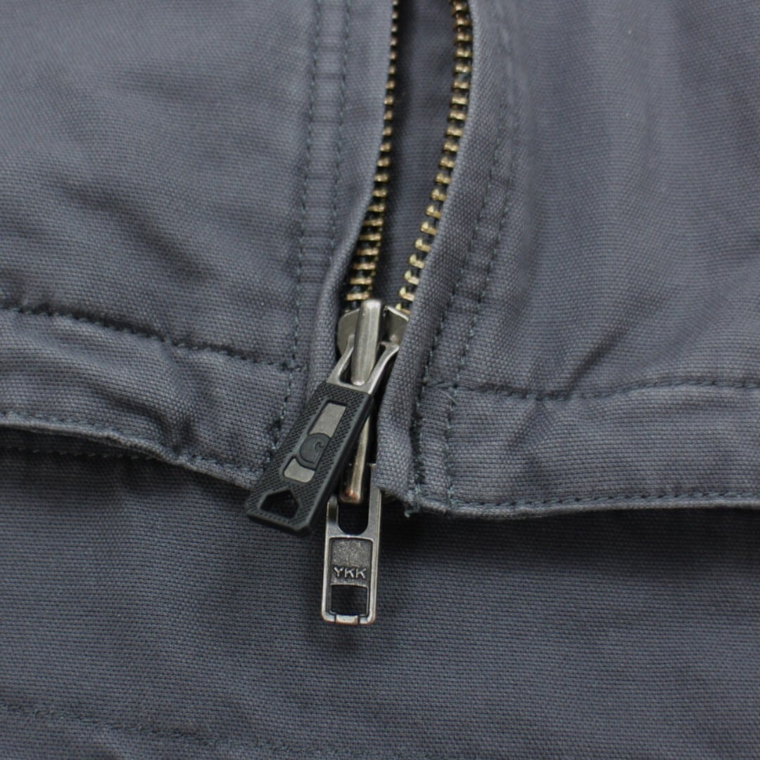 フェード感のあるグレーカラーに、フロント右胸のロゴ刺繍がアクセントとなり、ワークウェアらしさと機能性を兼ね備えたアイテムです。