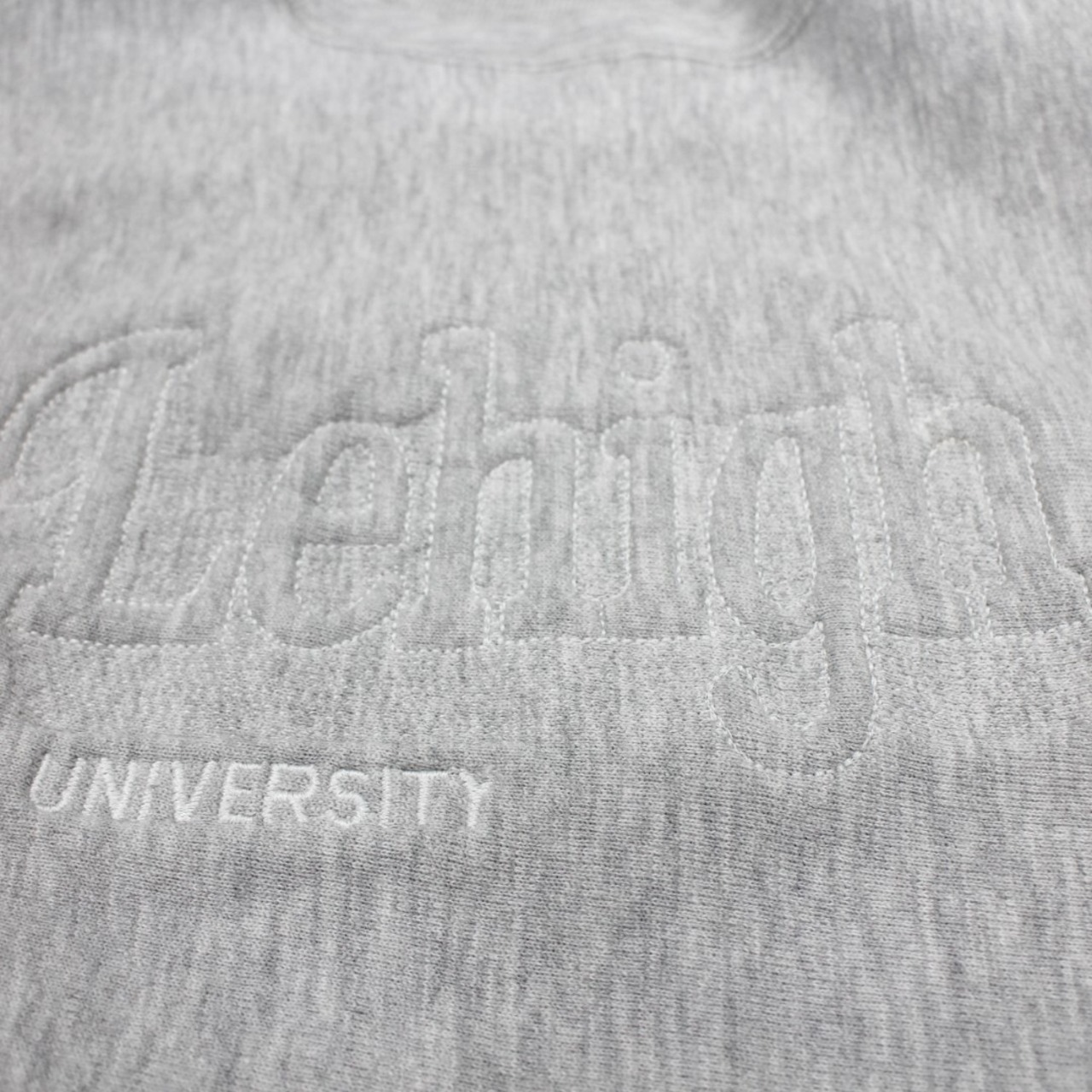90s USA製のカレッジ系エンボスロゴモデルで、フロントに「Lehigh University」の立体感ある同色ロゴが施された一着です。