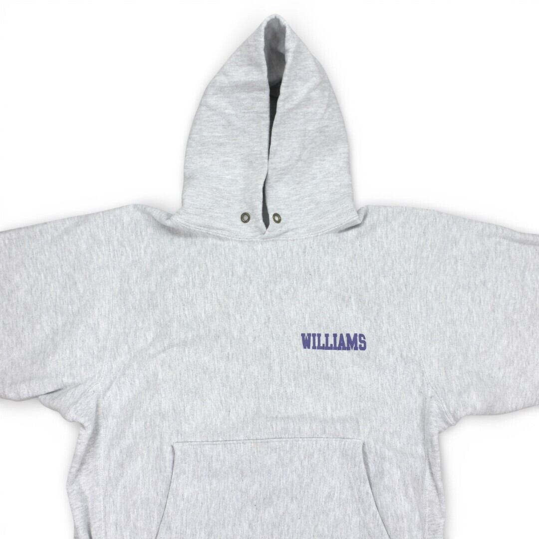 90s USA製のカレッジ系モデルで、フロントに「WILLIAMS」、バックに大きく配された「W」プリントが印象的な一着です。