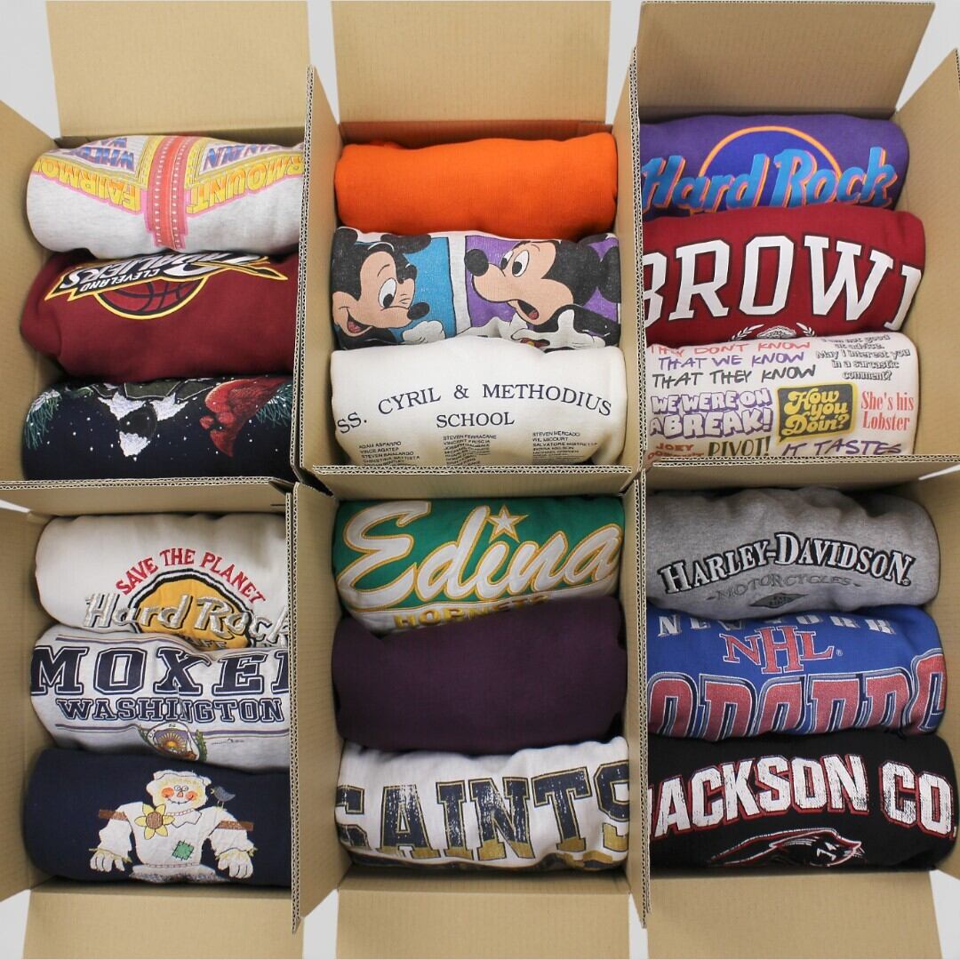 アメリカ古着の長袖クルーネックスウェットが入った、おまかせ3枚セットです。