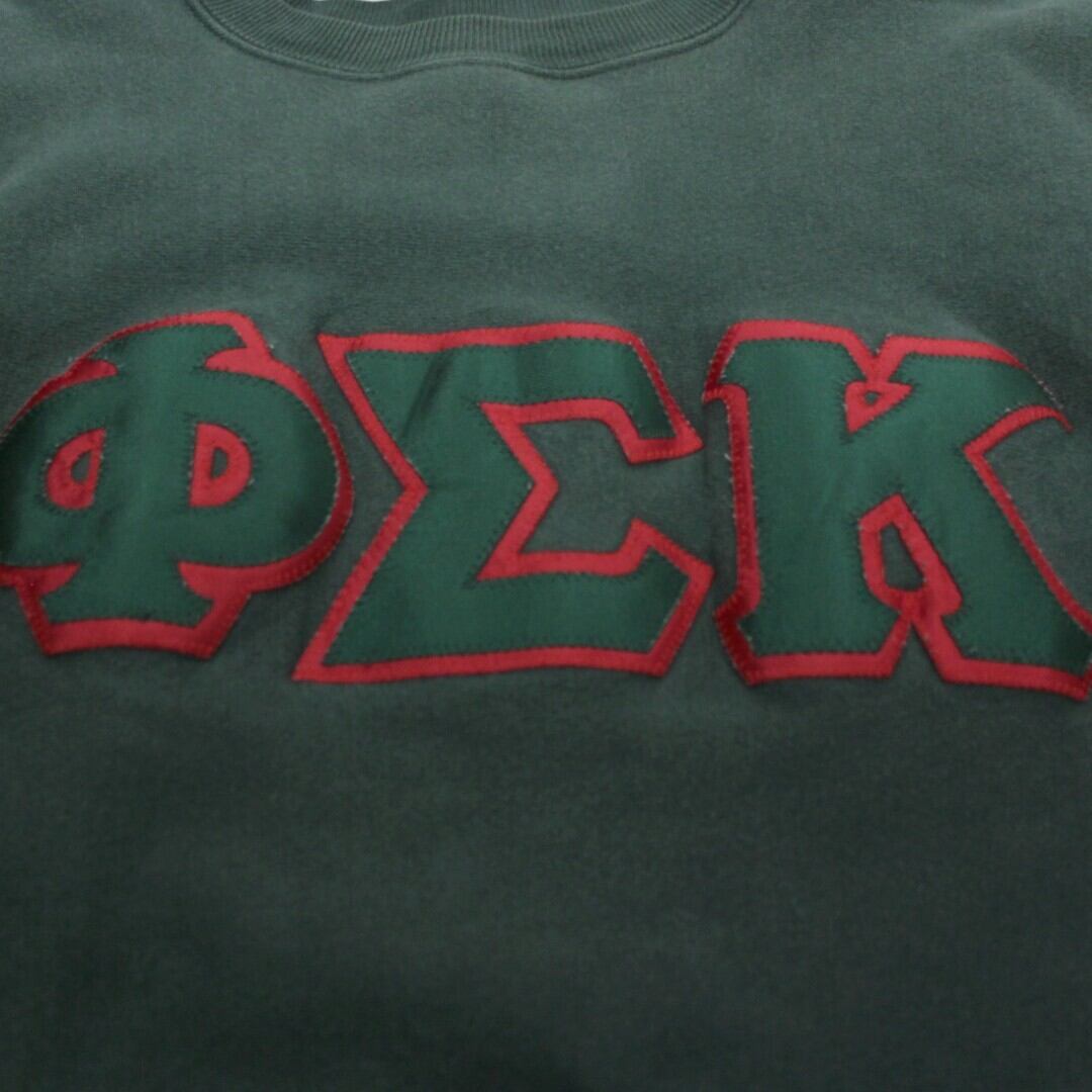 深みのあるグリーンボディにフロントのカレッジ系ロゴが映える一着で、落ち着いたカラーながら存在感のあるデザイン。