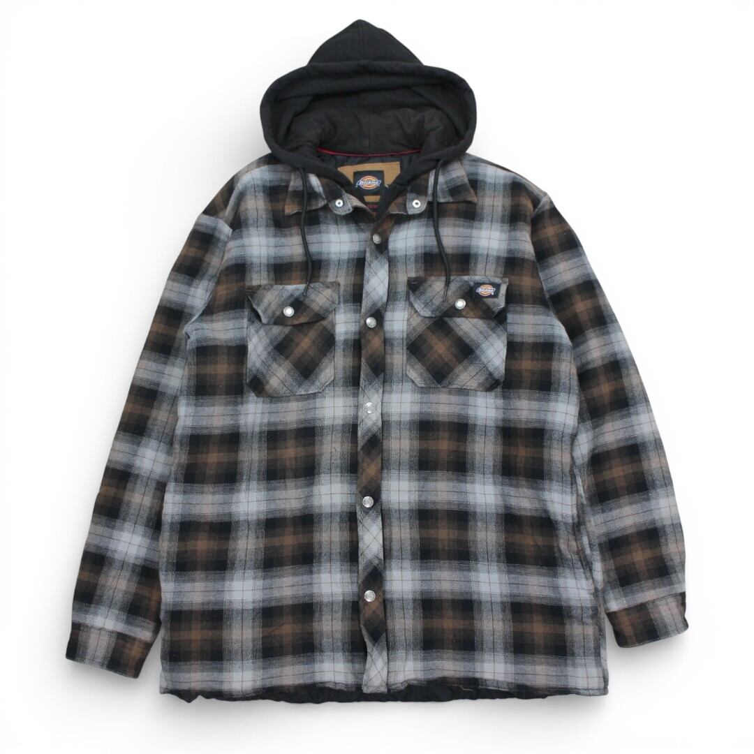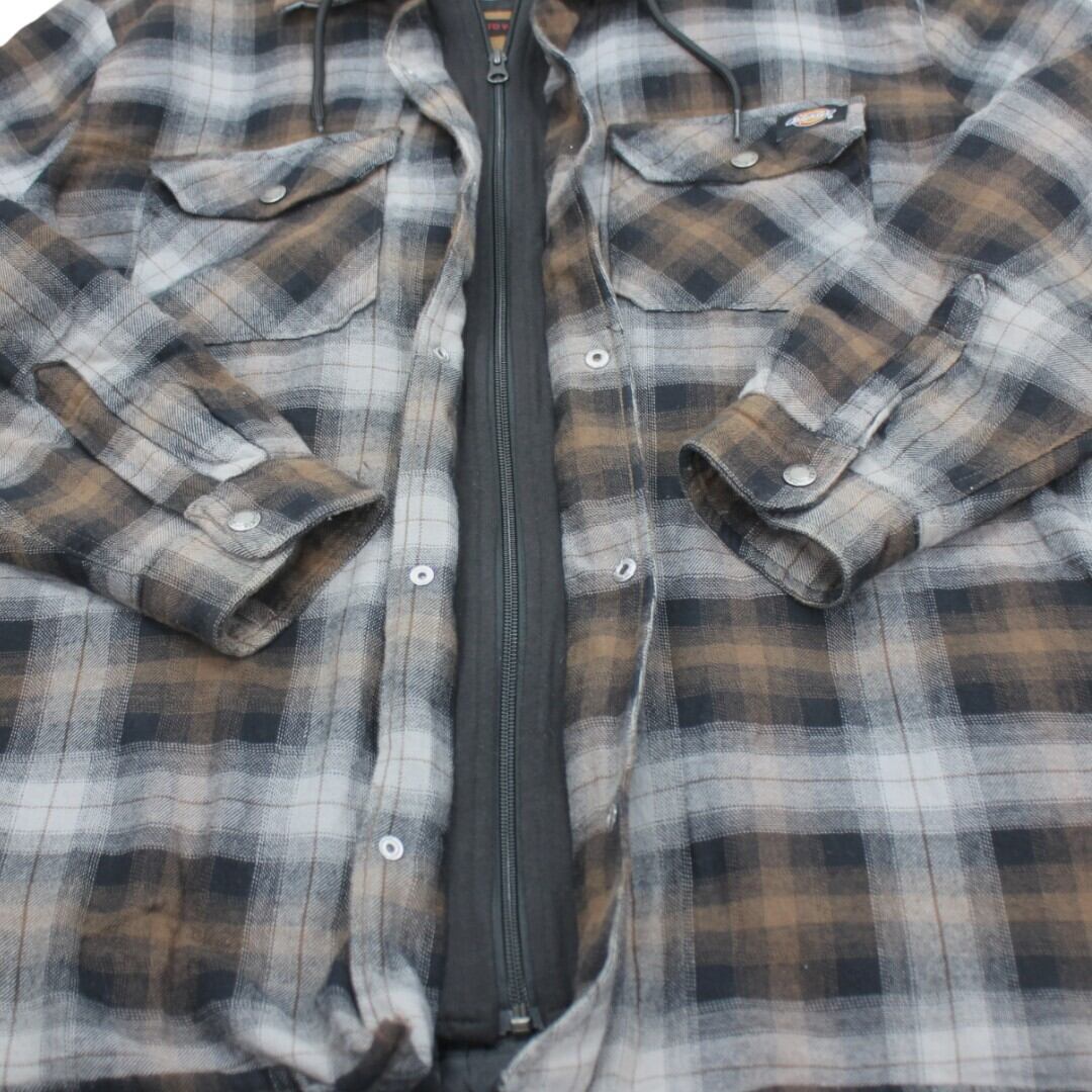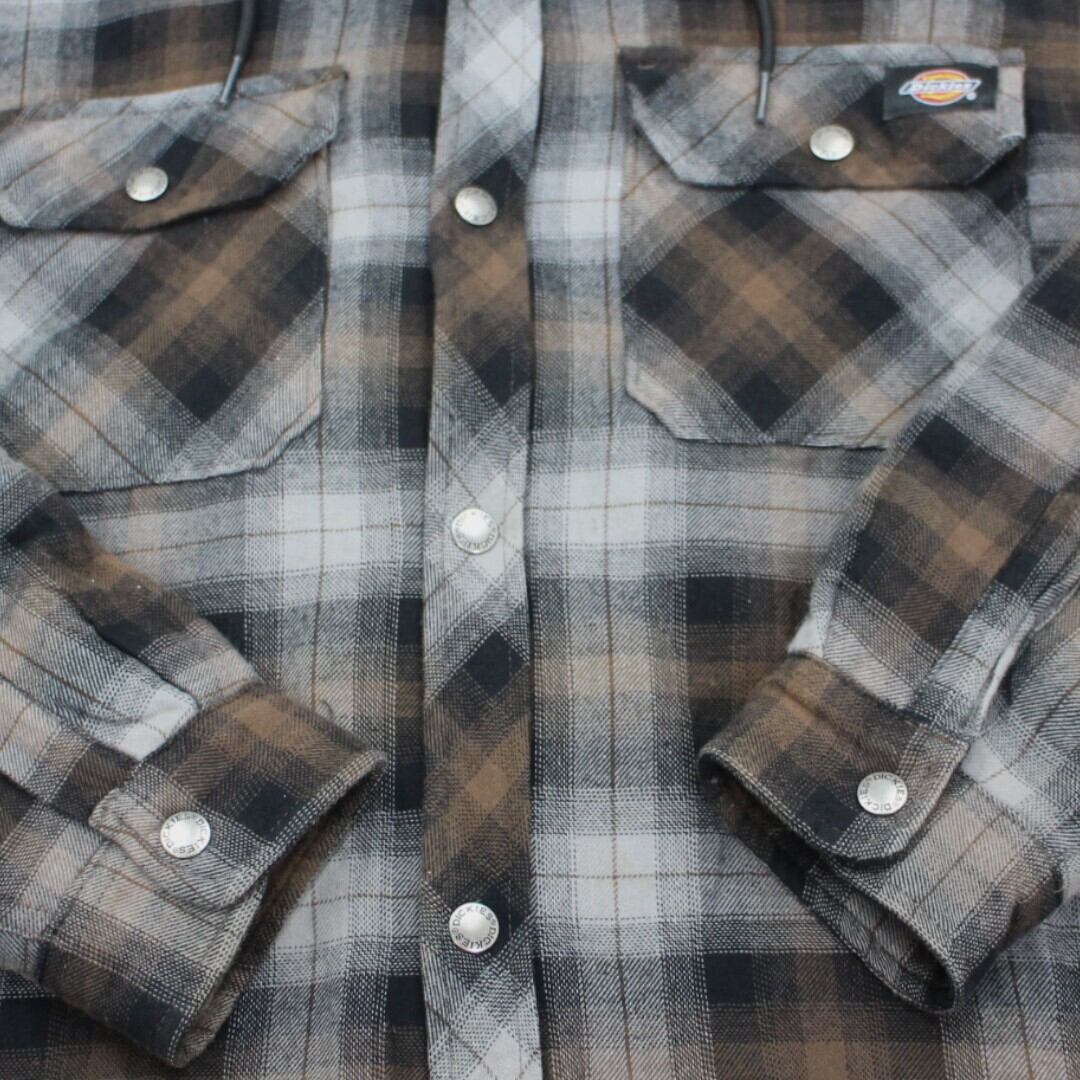 古着 Dickies Check Shirts Hoody Grey/Brown ネルシャツ 裏地ナイロン tjc002