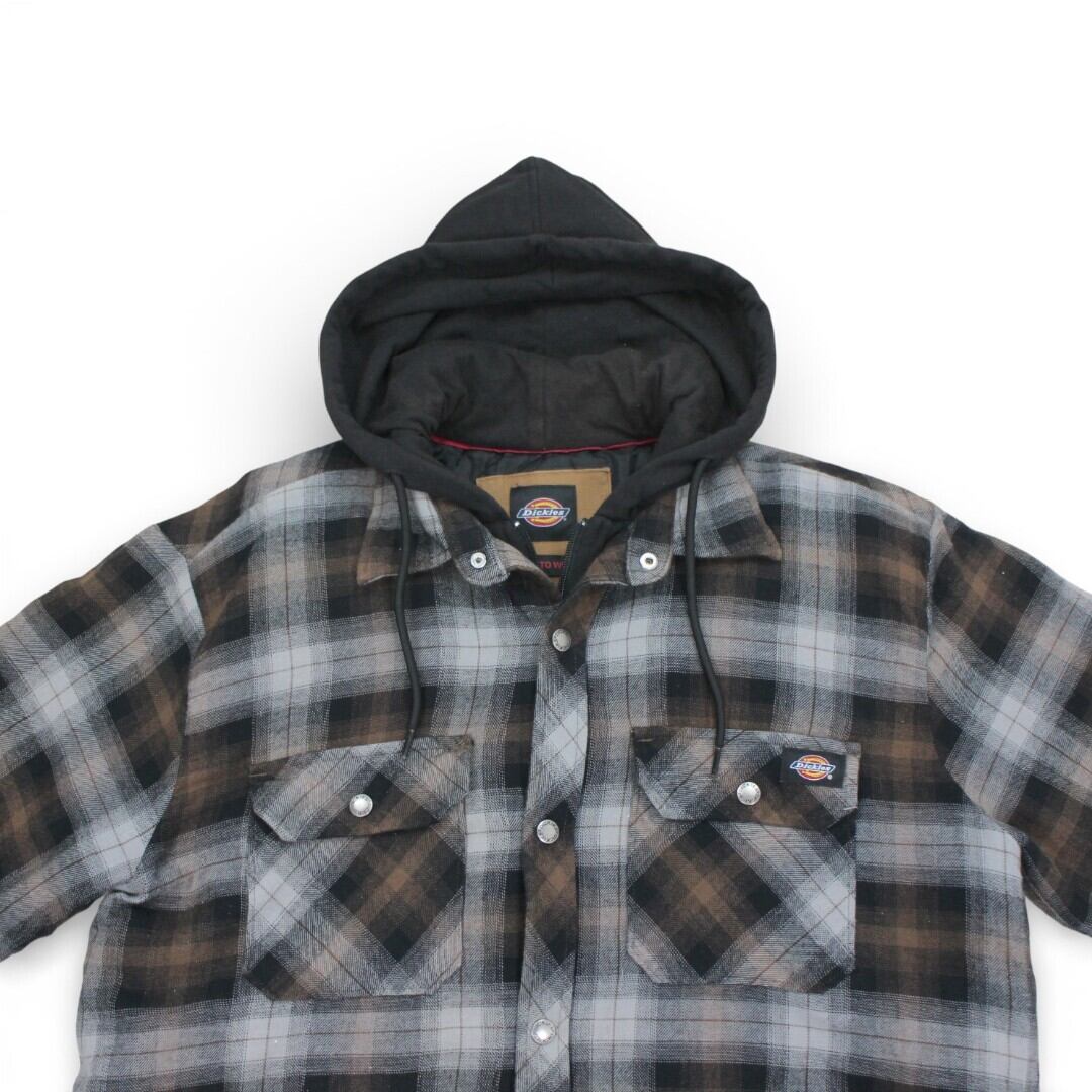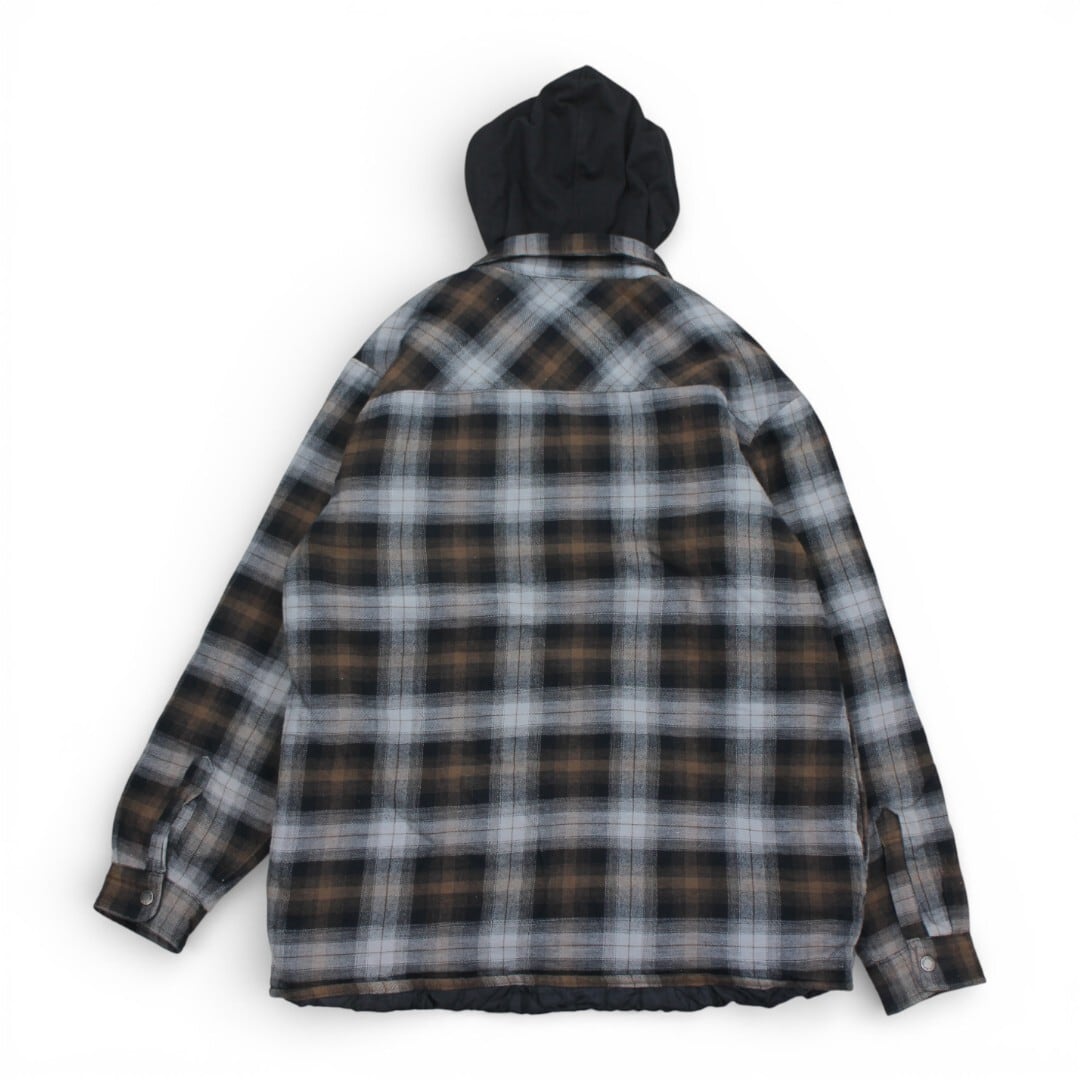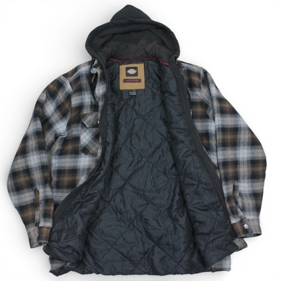 古着 Dickies Check Shirts Hoody Grey/Brown ネルシャツ 裏地ナイロン tjc002