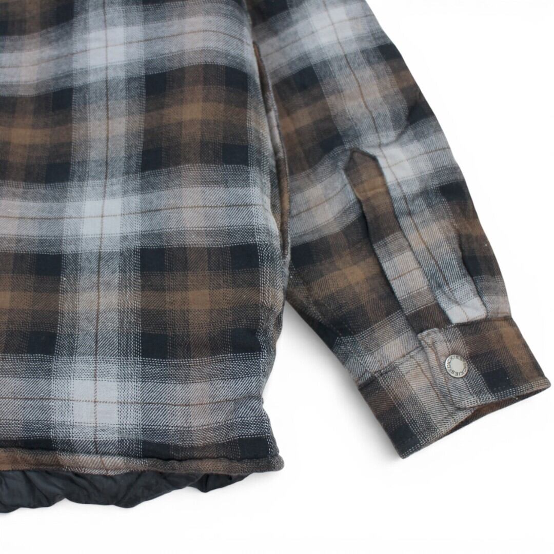 グレー×ブラウンの落ち着いたチェック柄が特徴で、ワークブランドらしい無骨さとカジュアルさを兼ね備えた一着です。