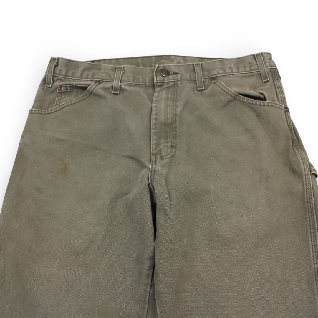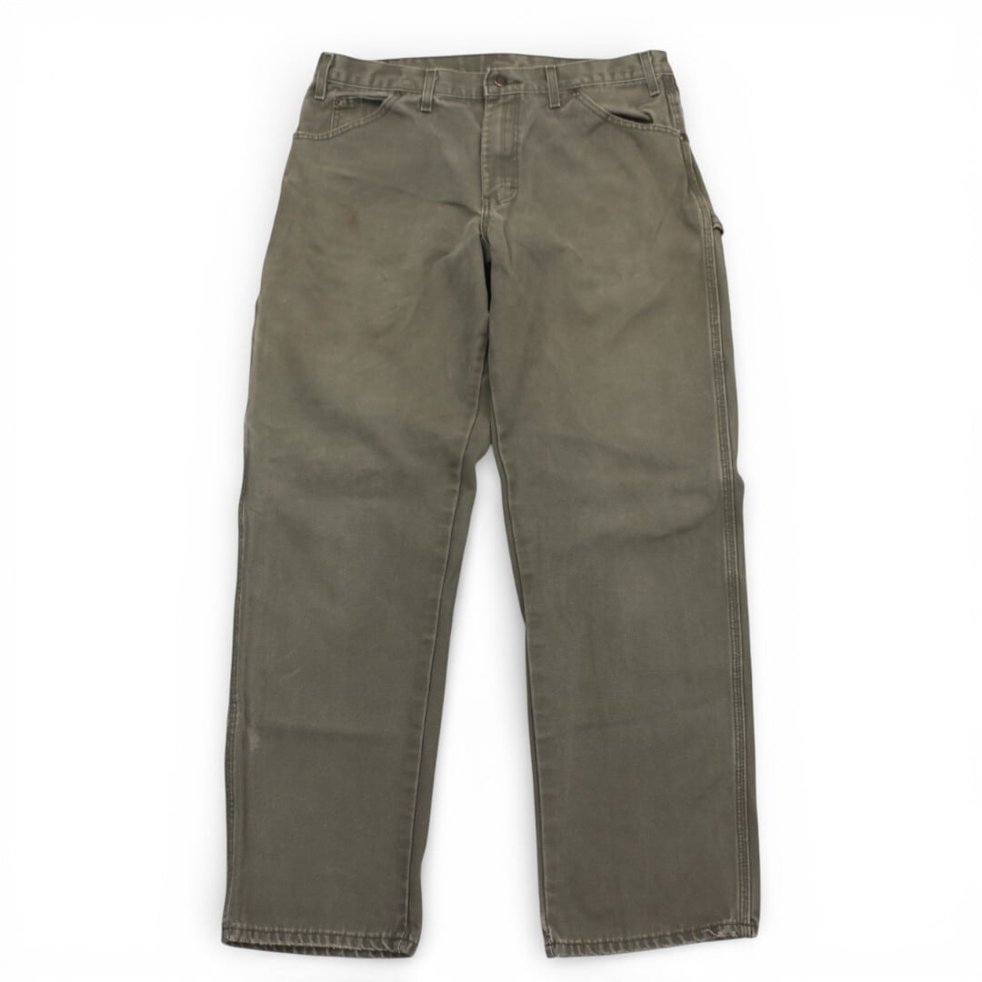 古着 Dickies 実寸からW34×L32 Work Pants Green ディッキーズ ダックワークパンツ tdc031