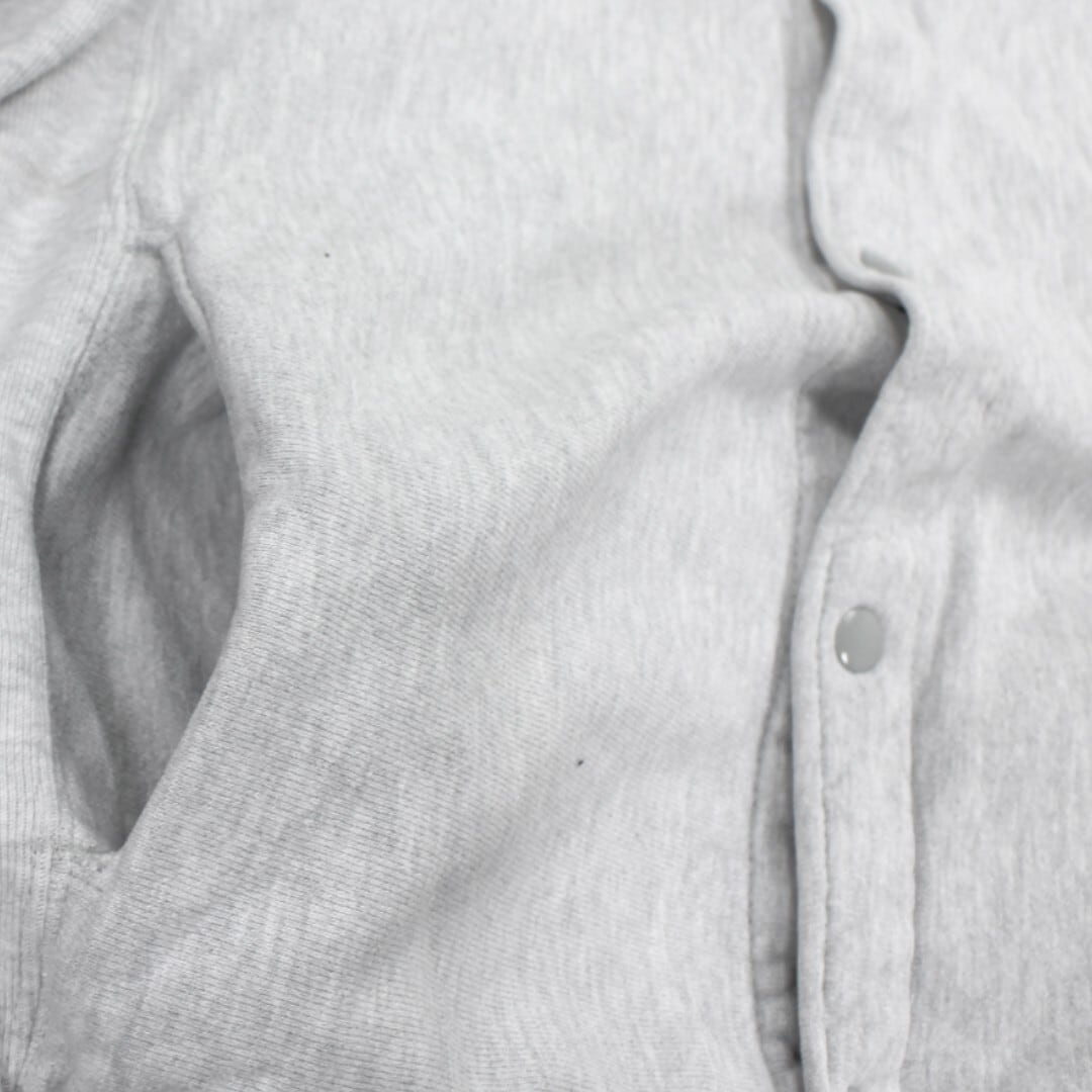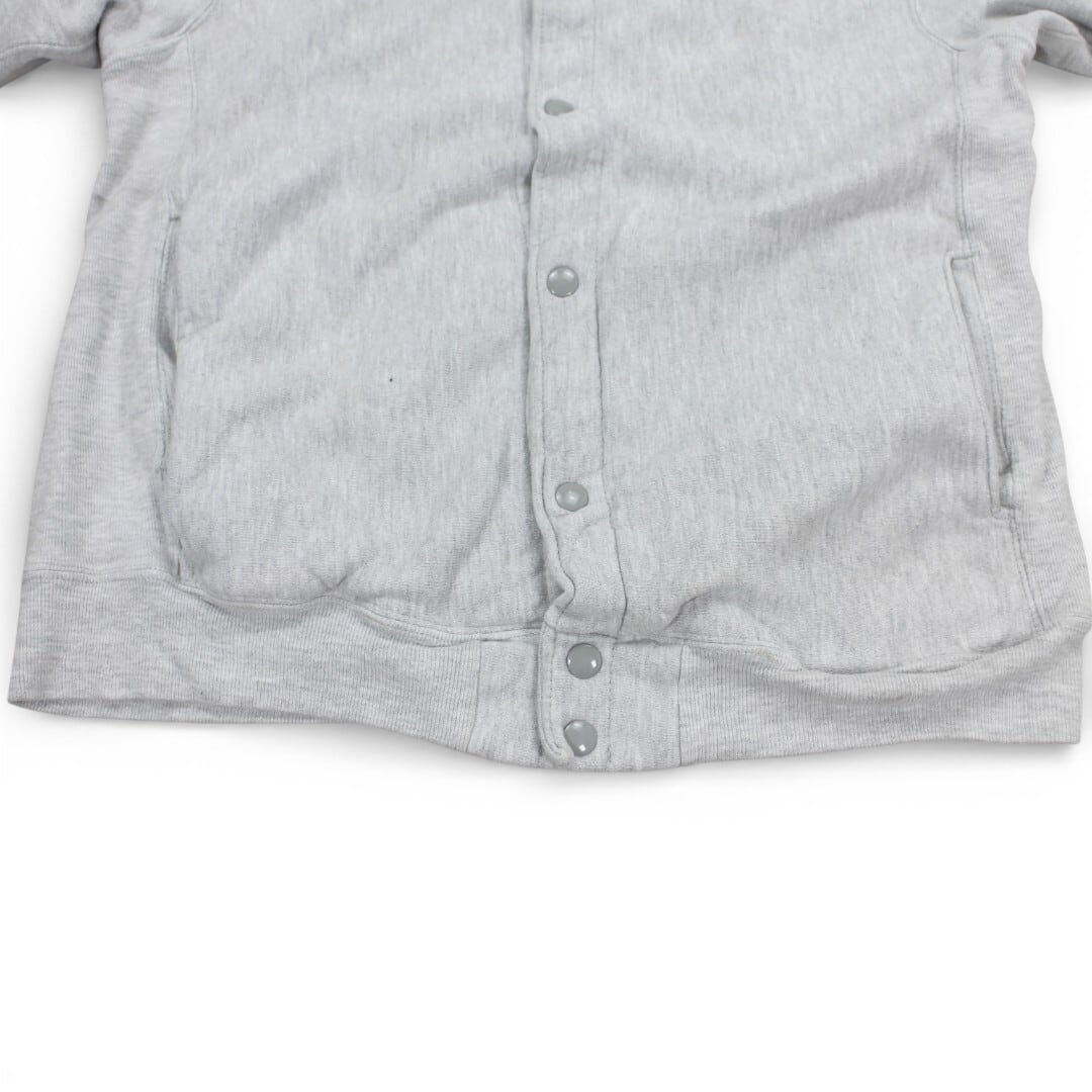 リバースウィーブ特有の肉厚でタフな生地感に、スナップボタン仕様のカーディガンタイプが特徴的な一着です。