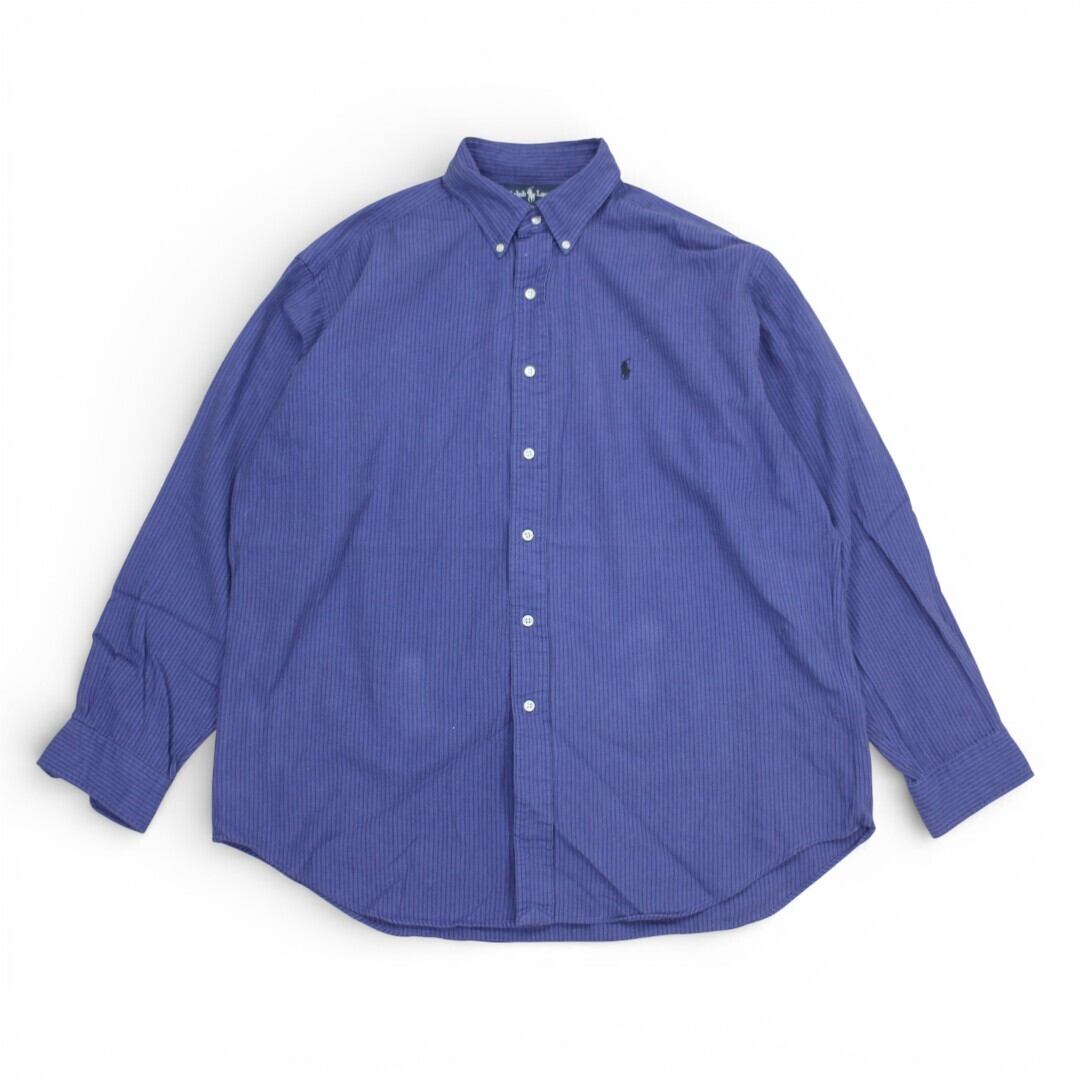 古着 Polo Ralph Lauren BLAIRE Right Purple Stripe ポロ ラルフローレン ボタンダウン 長袖シャツ trl204