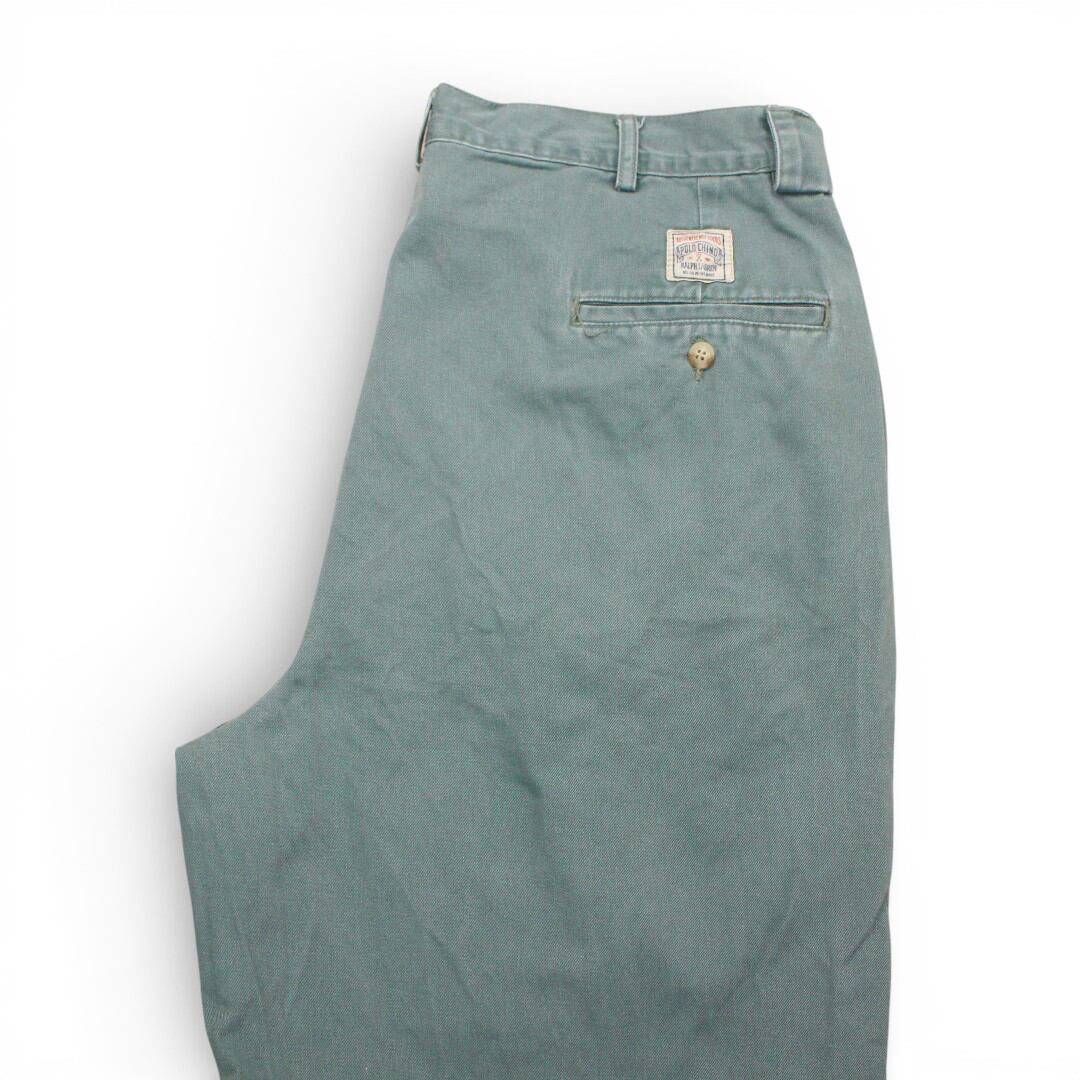古着 90s USA製 Polo Ralph Lauren W36×L30 Chino Pants Green ポロ ラルフローレン チノパン ツータック trl254
