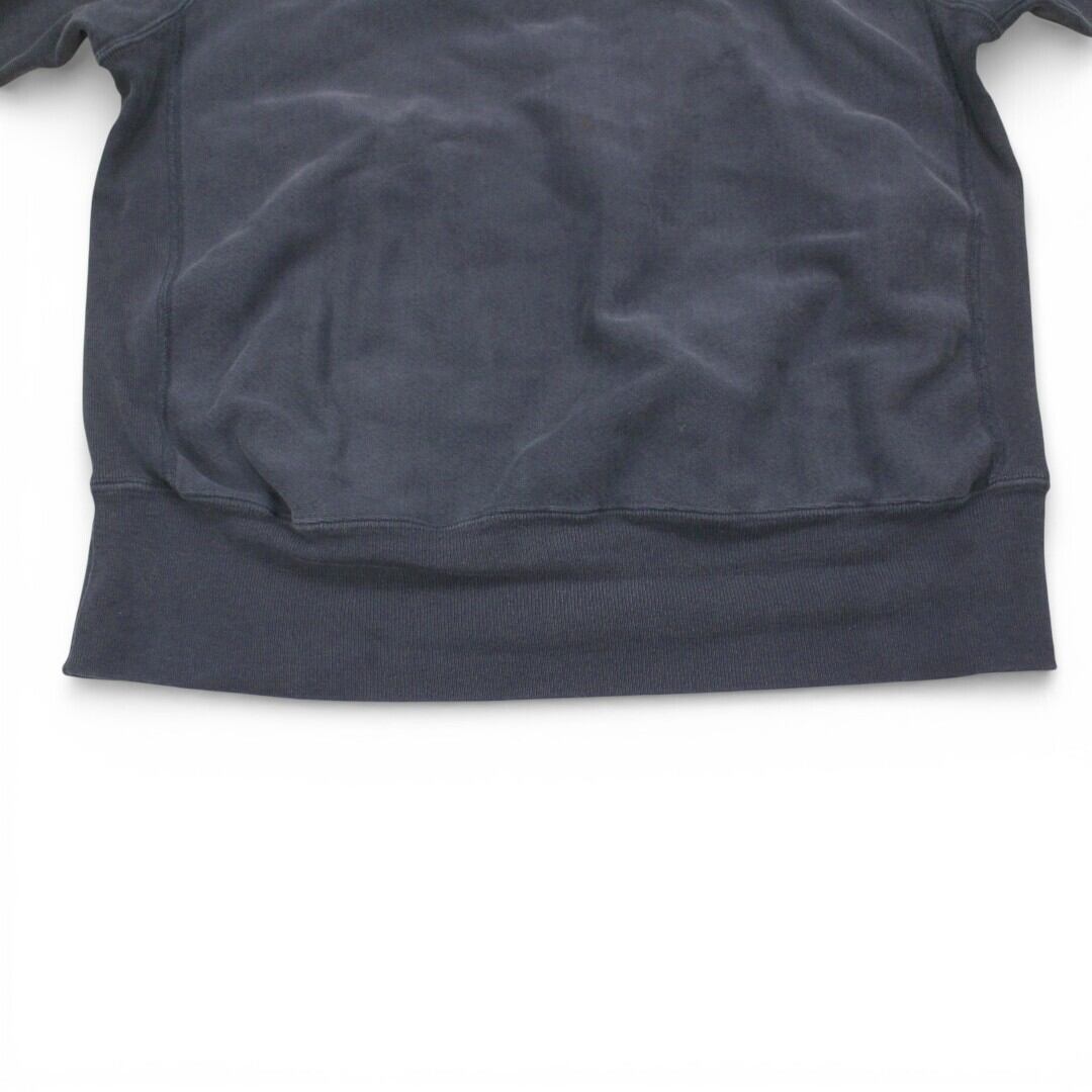 胸元と袖口にはワンポイントのロゴ刺繍入り。ネイビーカラーにフェードが加わり、ヴィンテージらしい雰囲気を演出しています。
