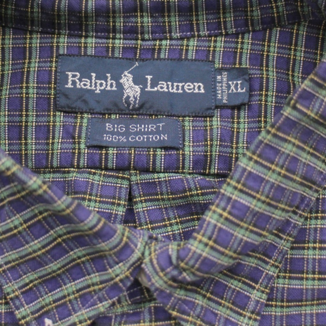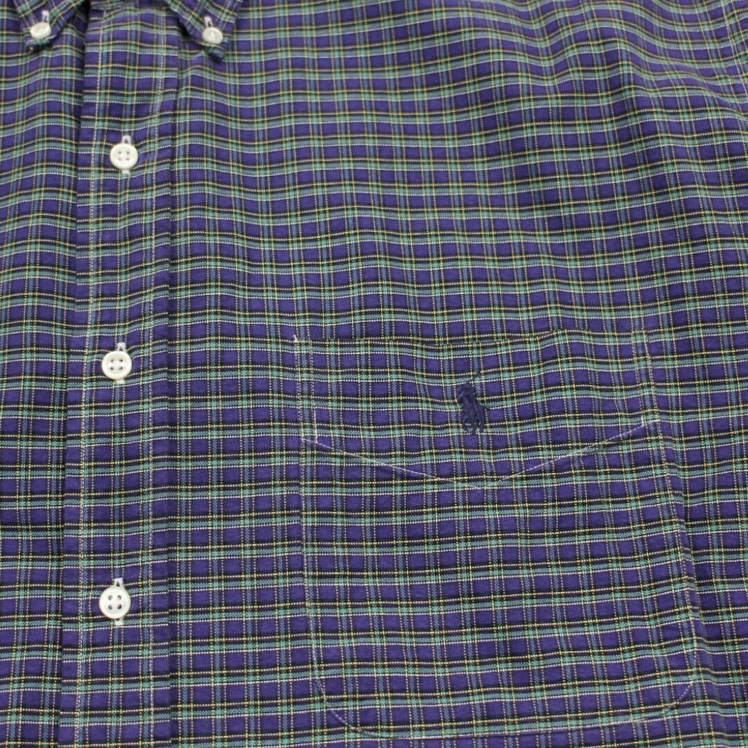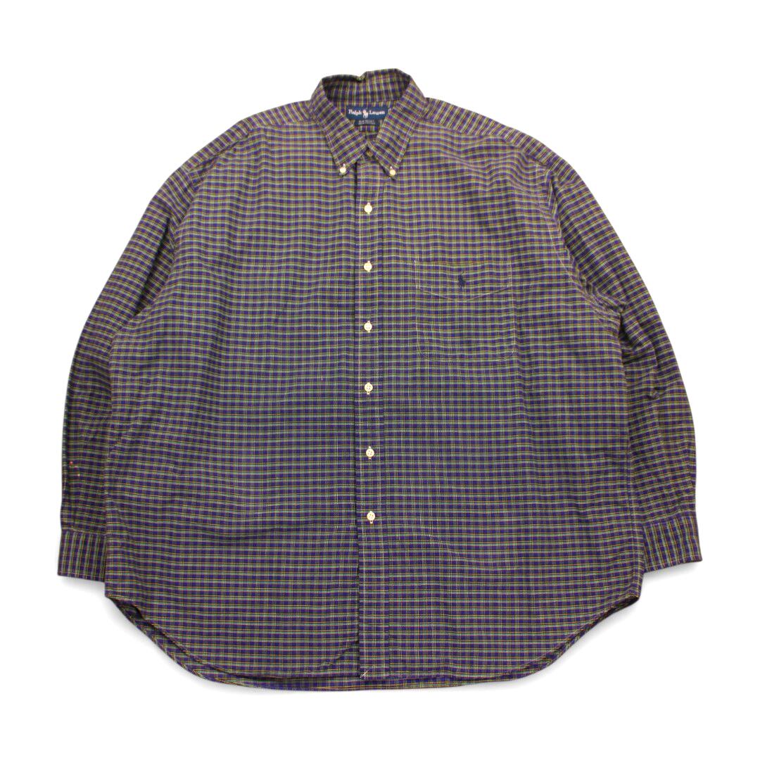 古着 90s' Polo Ralph Lauren Big Shirts Green/Purple/Check ポロ ラルフローレン ボタンダウン 長袖シャツ trl274