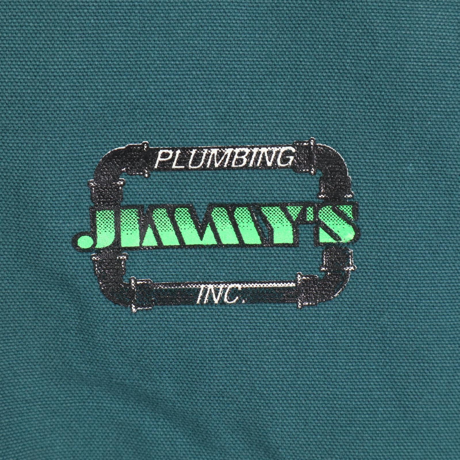 胸元には「PLUMBING JIMMY'S INC.」のロゴプリントが入り、背面には大きく配管モチーフのグラフィックが施されたインパクトのあるデザイン。