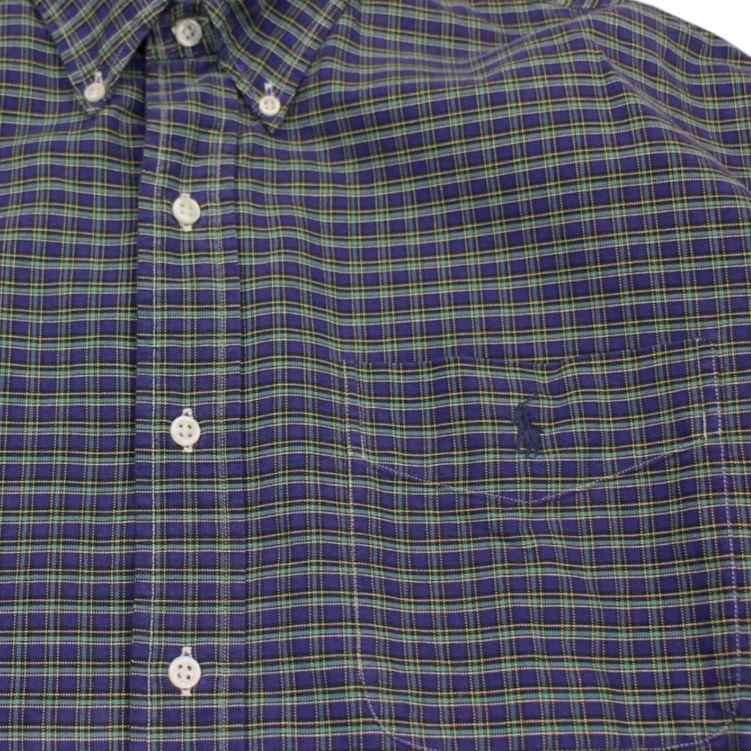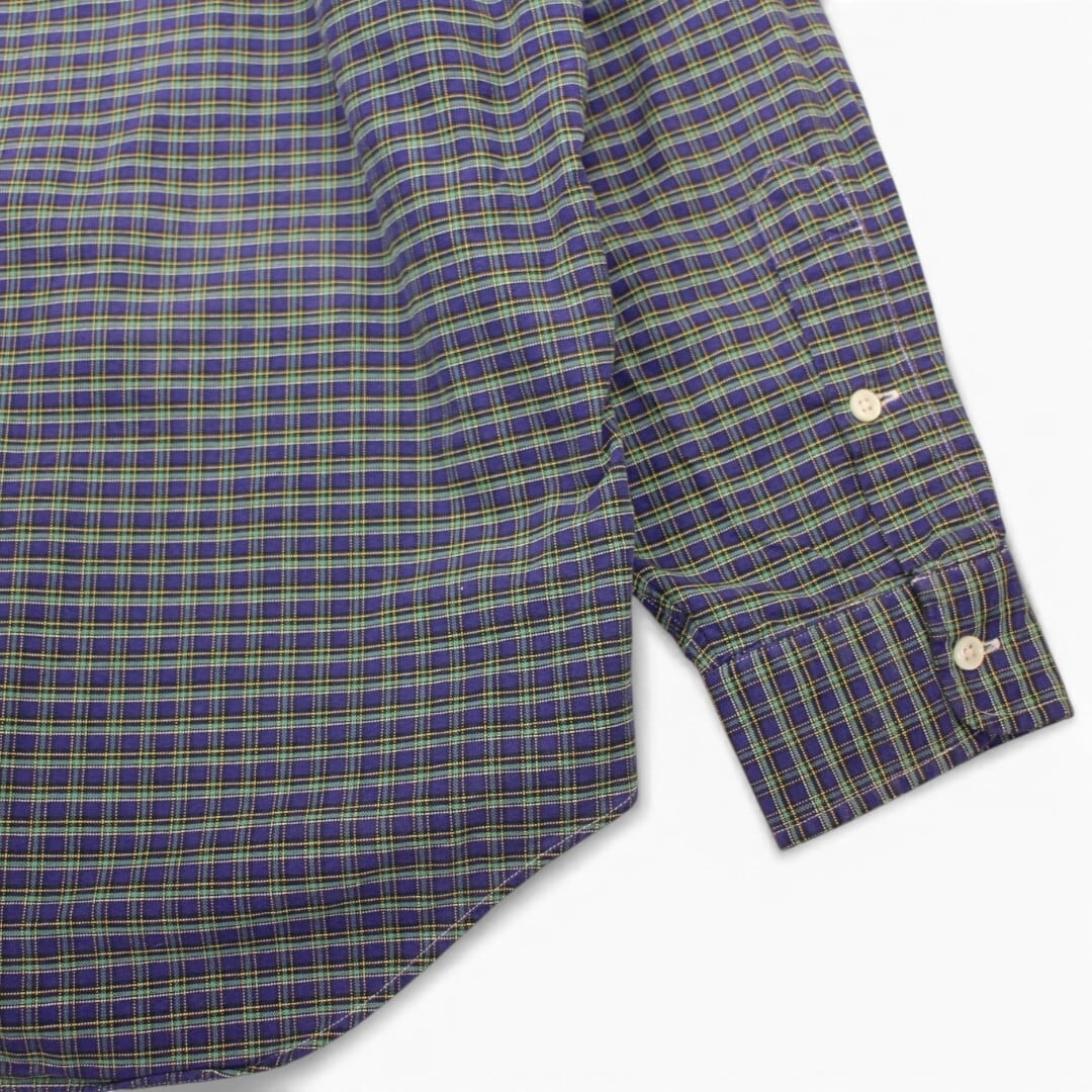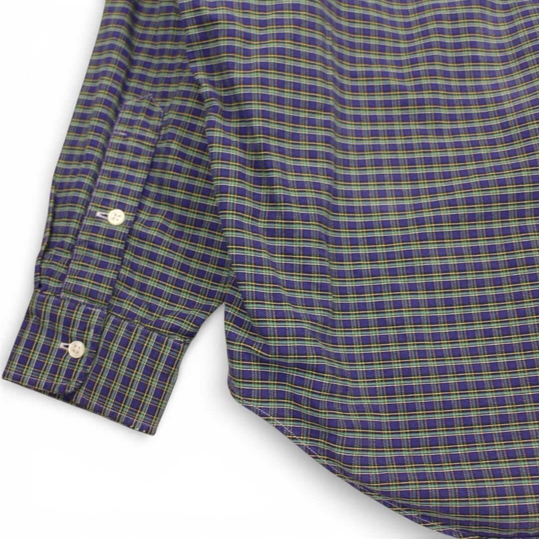 古着 90s' Polo Ralph Lauren Big Shirts Green/Purple/Check ポロ ラルフローレン ボタンダウン 長袖シャツ trl256
