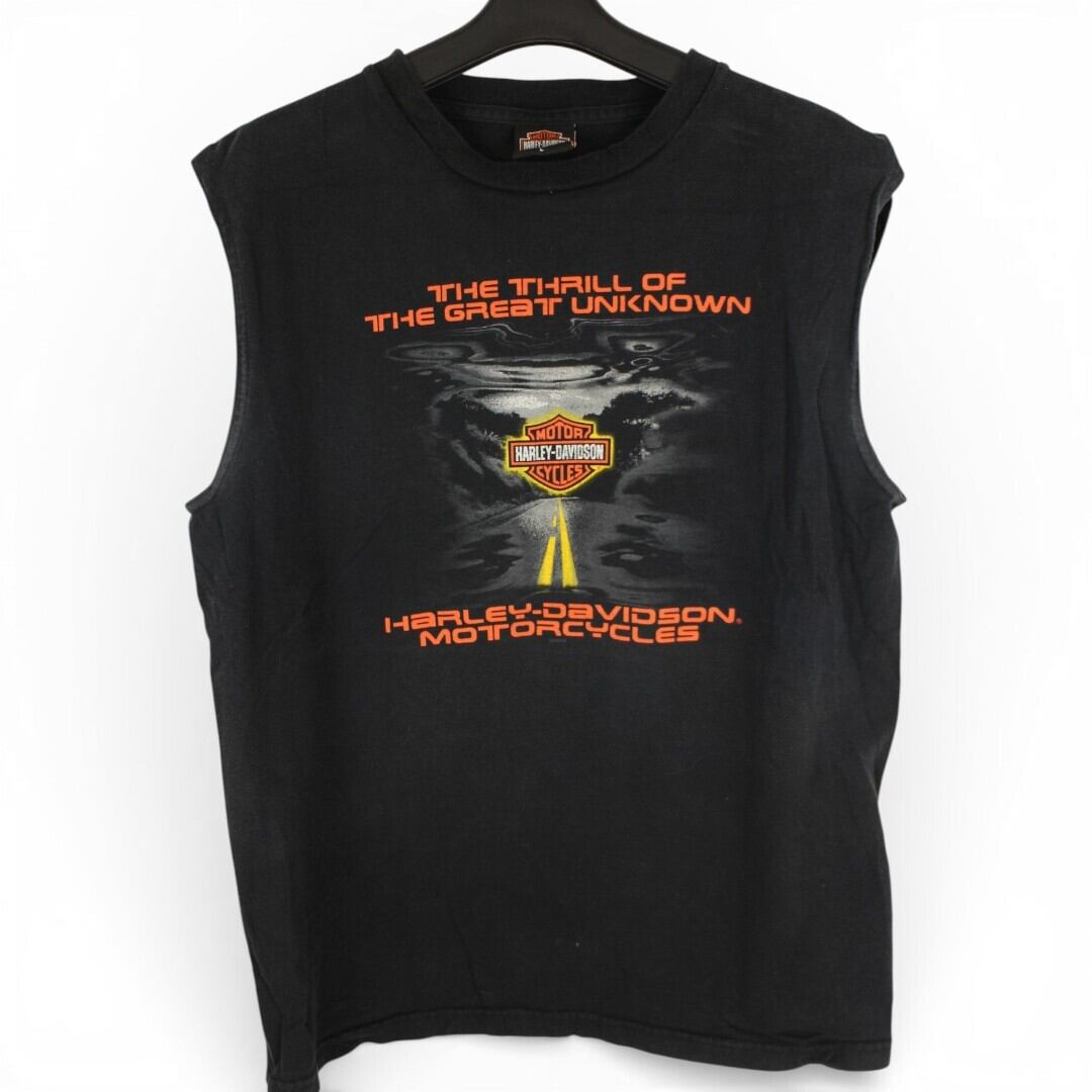 古着 00s USA製 Harley Davidson T-Shirts Black ハーレーダビッドソン ノースリーブ thd258