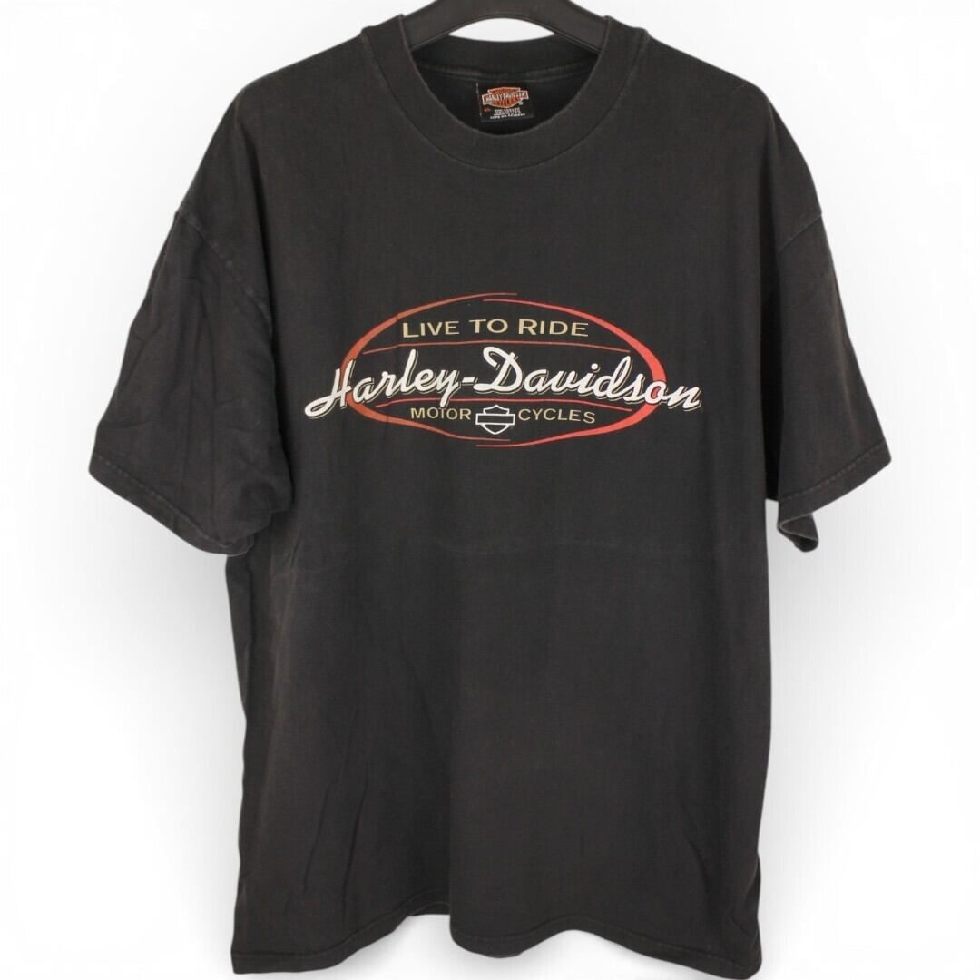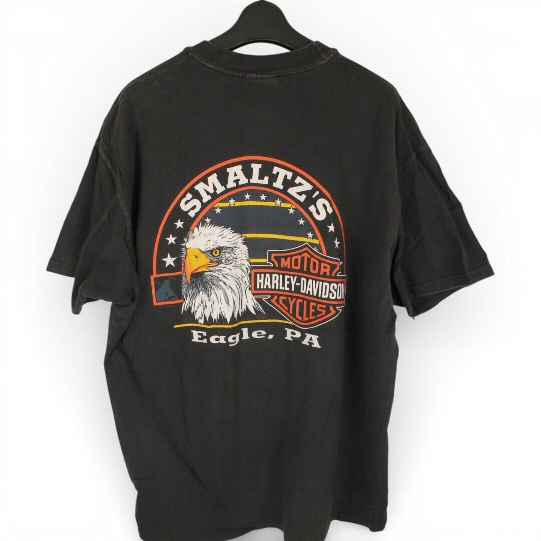 古着 90s USA製 Harley Davidson T-Shirts Washed Black ハーレーダビッドソン Tシャツ 半袖 thd268