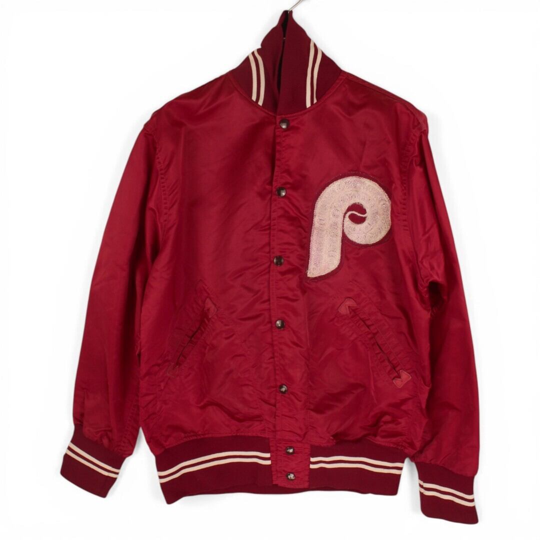古着 80s USA製 Wilson Nylon Stadium Jacket Wine Red ナイロン スタジャン フィリーズ tjc006
