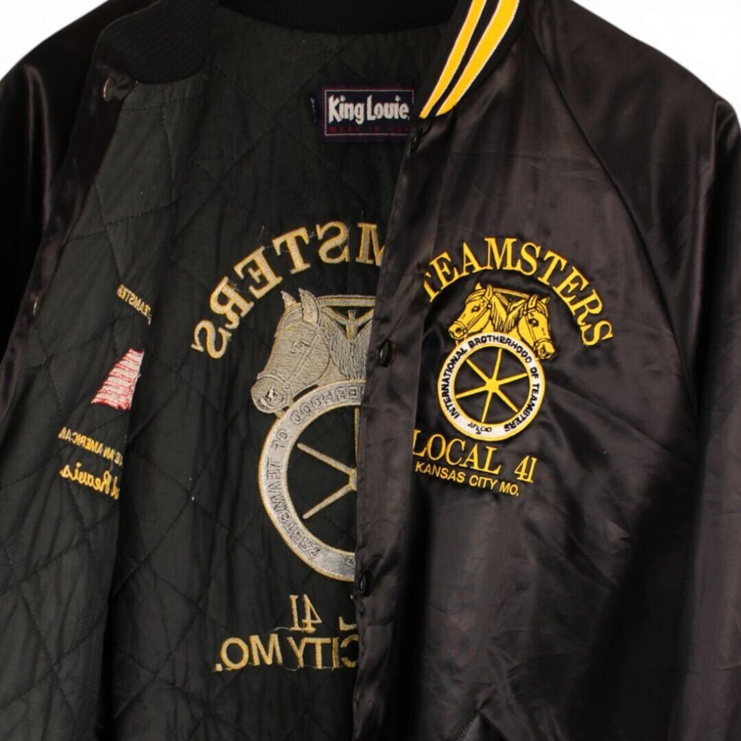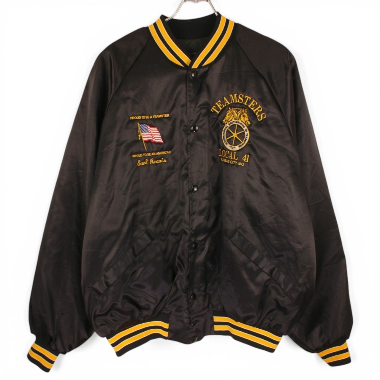 USA製のヴィンテージアイテムで、ブラックボディにイエローの刺繍が映える存在感のある一着です。