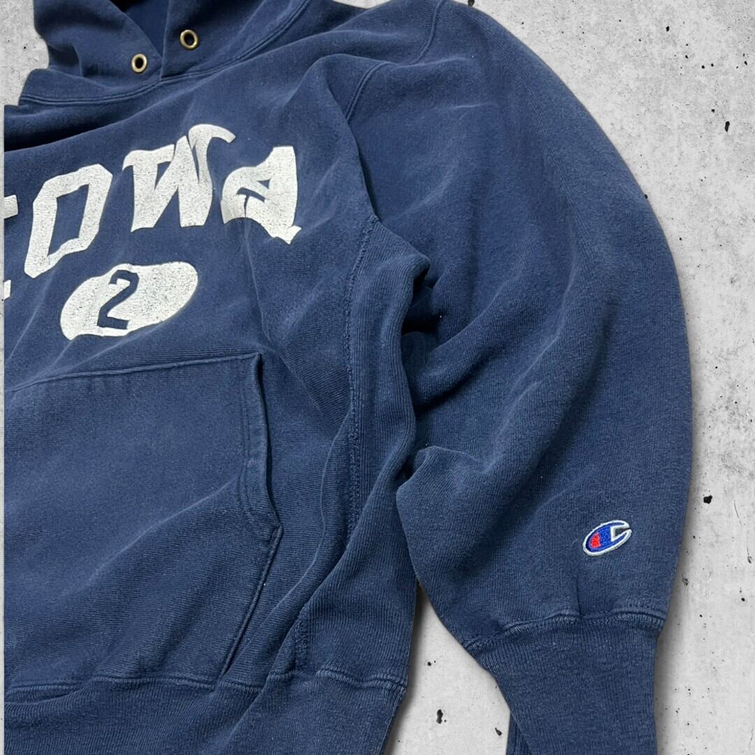 古着 80s-90s USA製 CHAMPION REVERSE WEARVE IOWA WASHED NAVY チャンピオン リバースウィーブ 刺繍タグ【Vintage】